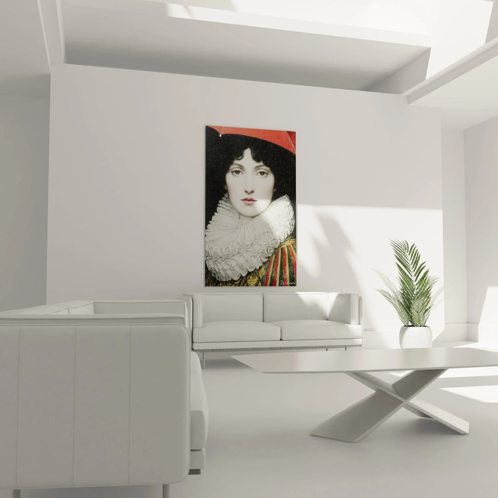 Cette œuvre d'art captivante met en avant une femme majestueuse, drapée dans une collerette blanche délicate. Les détails minutieux des plis et des textures vous plongent dans un monde où chaque regard révèle une nouvelle nuance de beauté. La lumière danse sur cette toile, révélant des teintes riches et profondes qui apportent de la chaleur et du caractère à votre intérieur.