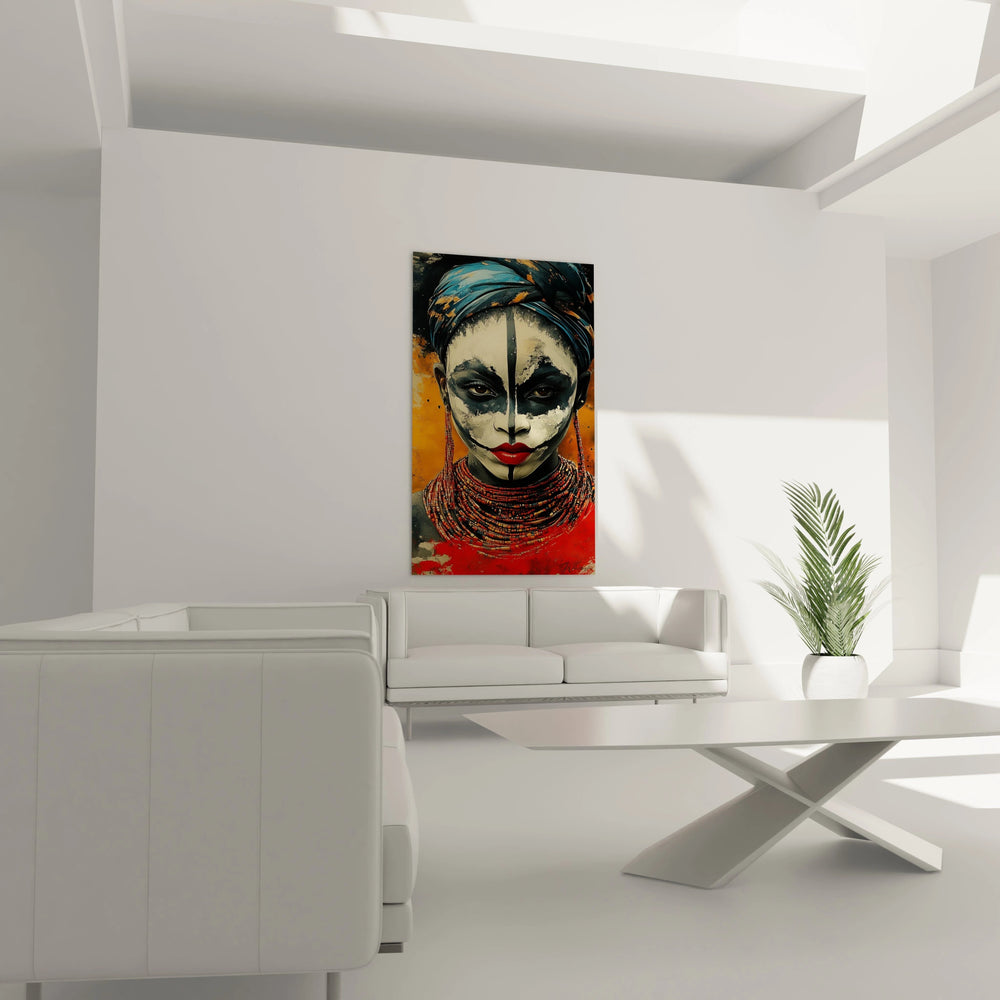 Cette œuvre captivante dégage une aura noble et mystérieuse qui transformera votre espace de vie en un sanctuaire d’élégance et de profondeur culturelle. Les courbes délicates et le regard puissant de la silhouette féminine évoquent les récits anciens et la résilience d’un peuple fier et authentique.