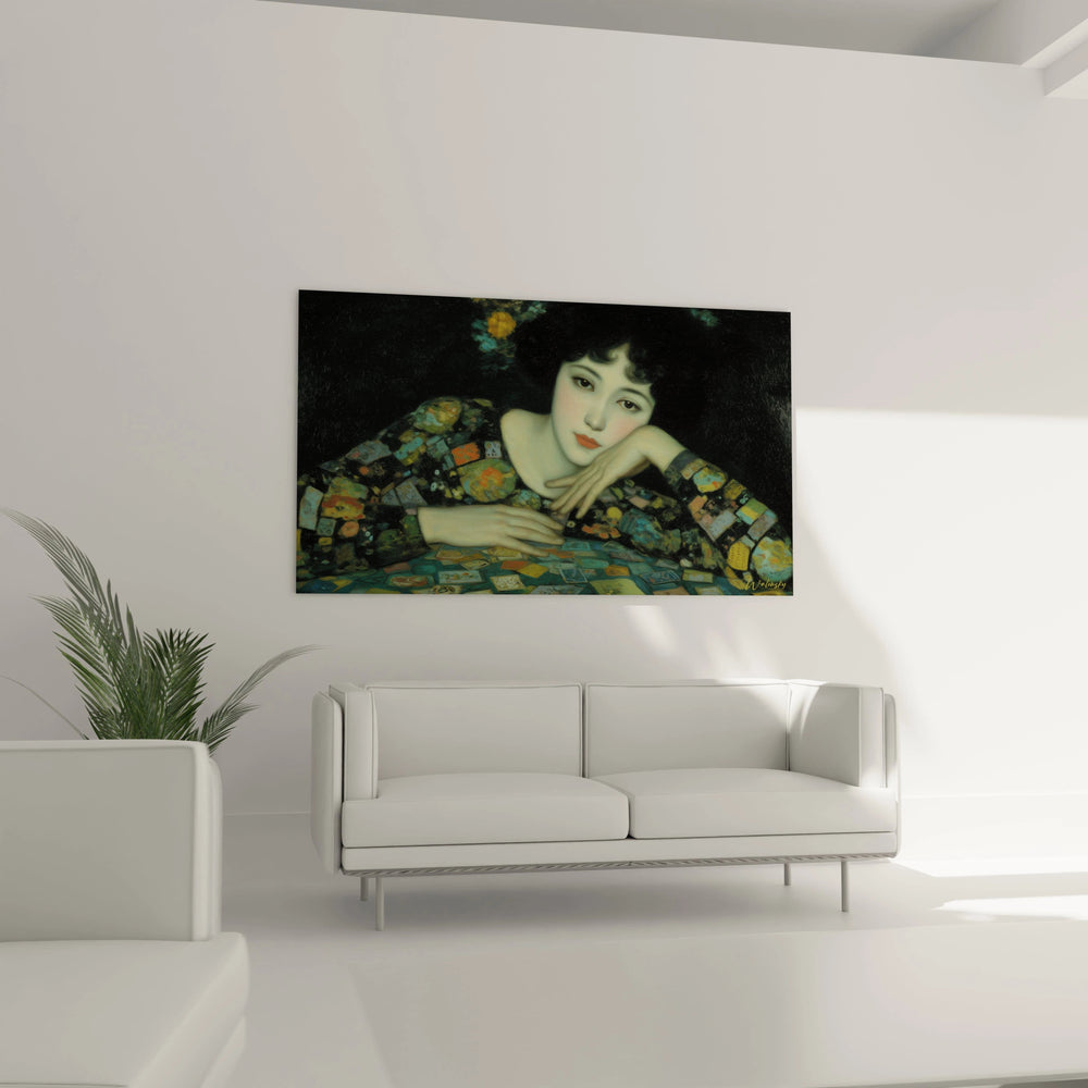 Cette décoration murale femme élégante s'épanouit particulièrement dans des environnements contemporains aux tons neutres. Un éclairage LED orienté met en valeur les subtilités chromatiques sans créer de reflets parasites. L'association avec des tons beiges, crèmes ou gris anthracite amplifie son impact visuel. Ce tableau femme salon moderne trouve sa place idéale face à un canapé ou dans un hall d'entrée où il peut être admiré sous différents angles. Les espaces aux plafonds hauts lui conviennent particulièrement, permettant un recul suffisant pour apprécier l'ensemble de la composition. Un encadrement sobre en bois naturel ou métal brossé complète parfaitement son esthétique raffinée.
