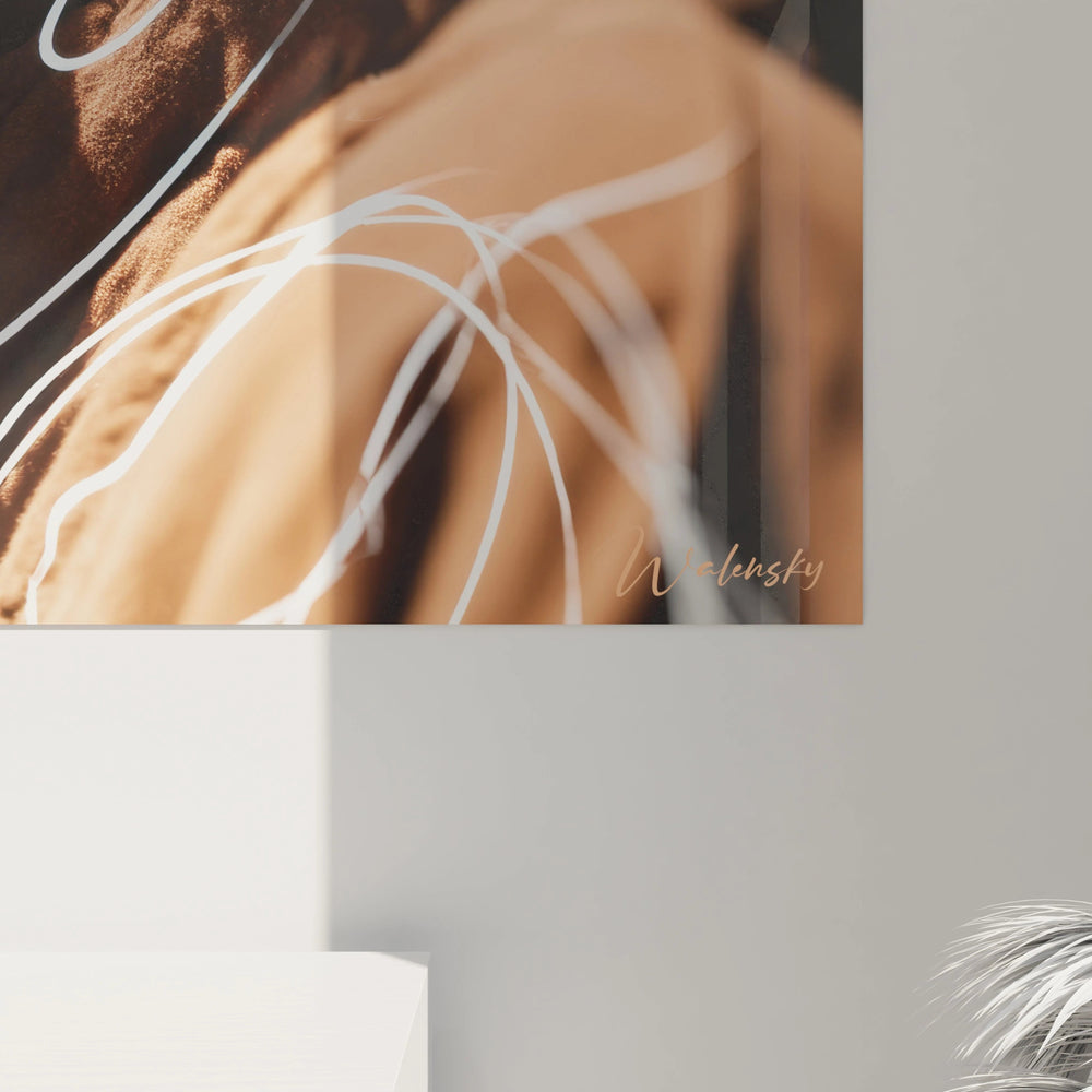 Cette création s'inspire des courants artistiques contemporains mêlant photographie et art numérique. Elle évoque les travaux d'artistes comme Alex Grey dans l'utilisation de tracés lumineux sur le corps humain, ou encore les créations de Refik Anadol qui explore l'intersection entre art et technologie. L'approche rappelle également les techniques de light painting photographique popularisées par des artistes comme Darren Pearson. Le style hybride fait écho aux tendances actuelles de l'art digital où la frontière entre réel et virtuel s'estompe. Cette esthétique moderne s'inscrit dans la continuité des mouvements artistiques explorant les nouvelles technologies comme support d'expression créative, parfait pour une décoration murale artistique sophistiquée.