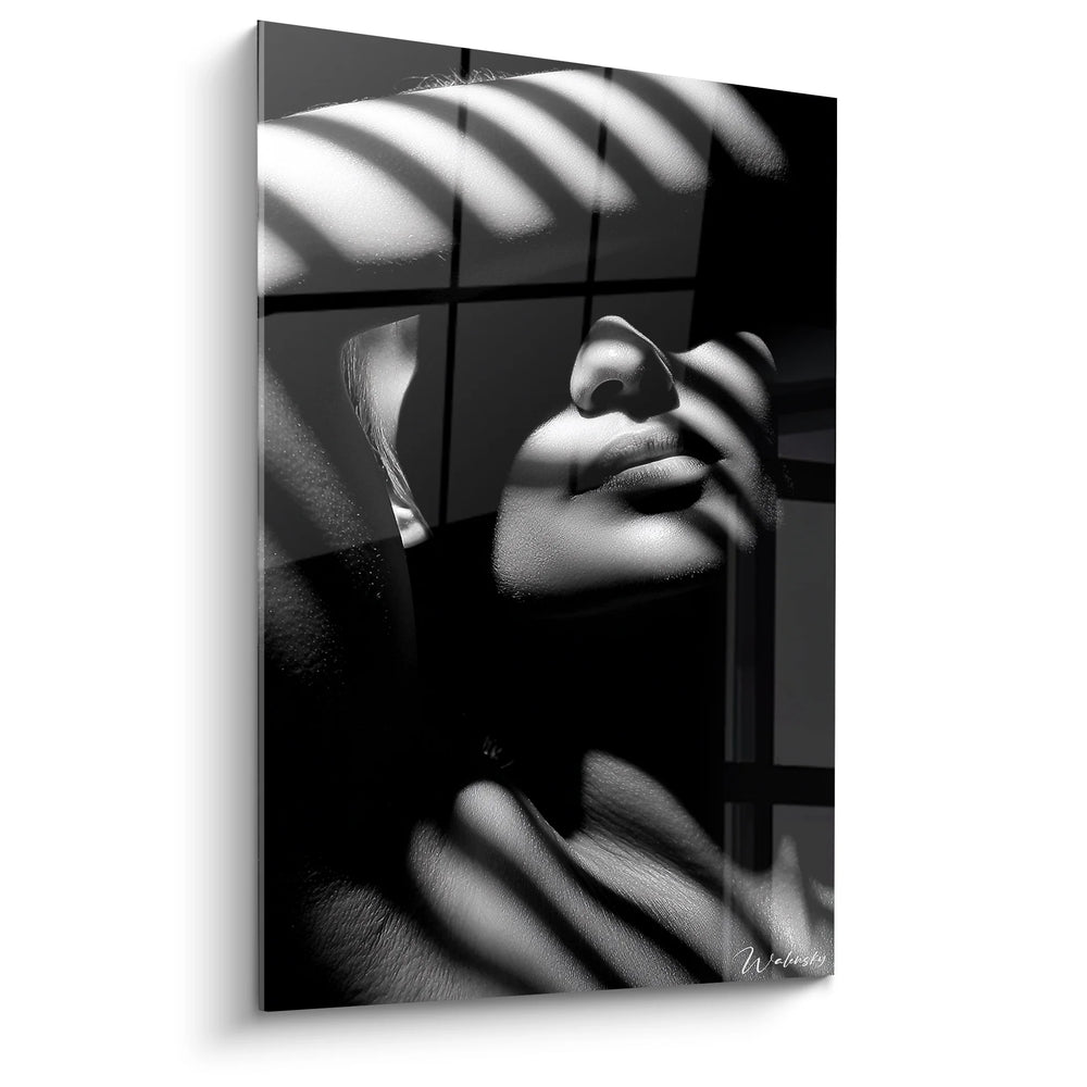 Tableau femme ombres fenêtre - Lumière captive - Edition visage noir et blanc