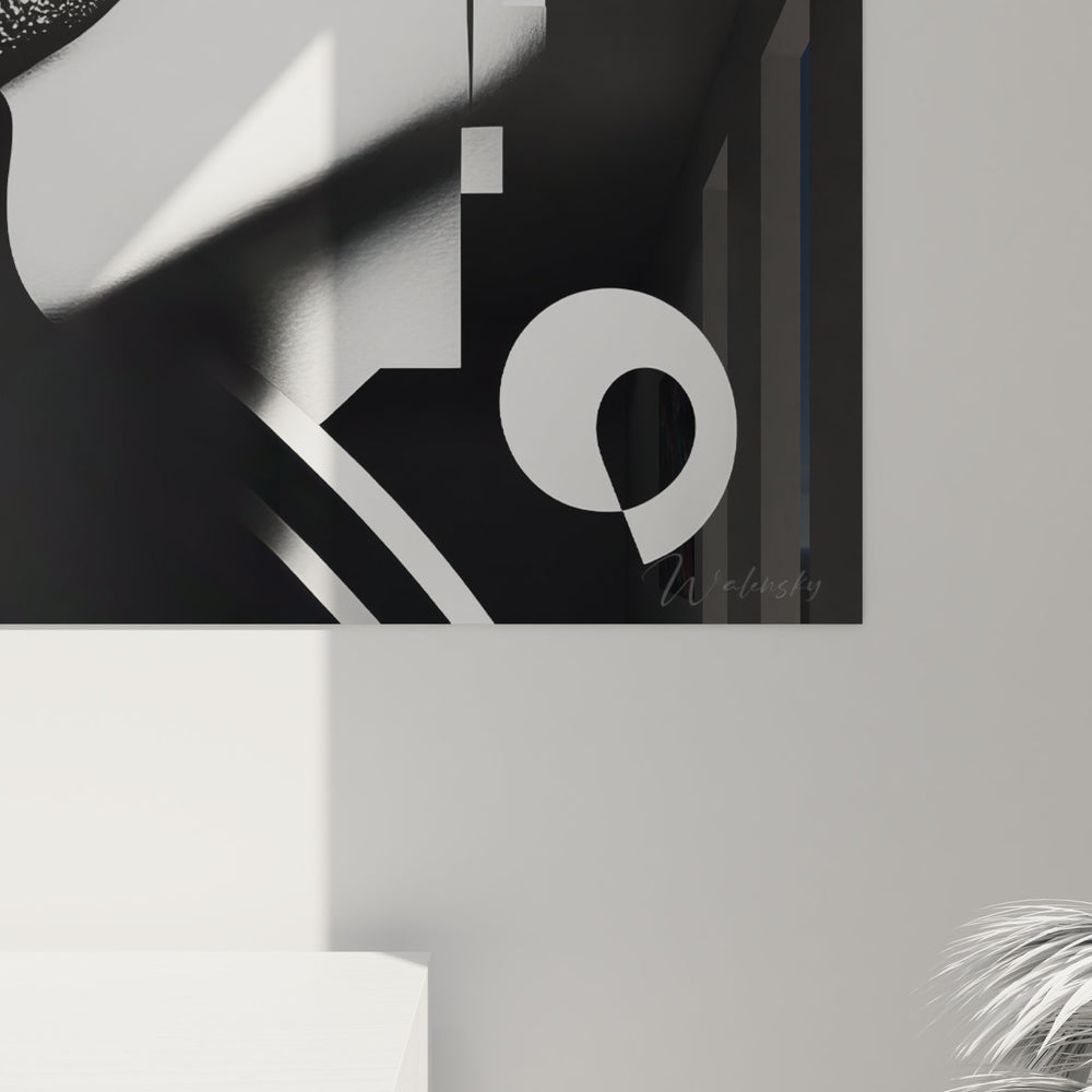 La palette noir et blanc de ce tableau évoque l'intemporalité et l'élégance absolue. Le contraste monochrome symbolise la dualité entre lumière et ombre, révélant la profondeur émotionnelle du portrait. Les tons graphiques renforcent l'aspect moderne et sophistiqué de l'œuvre, créant une atmosphère théâtrale et mystérieuse parfaitement adaptée aux intérieurs contemporains.