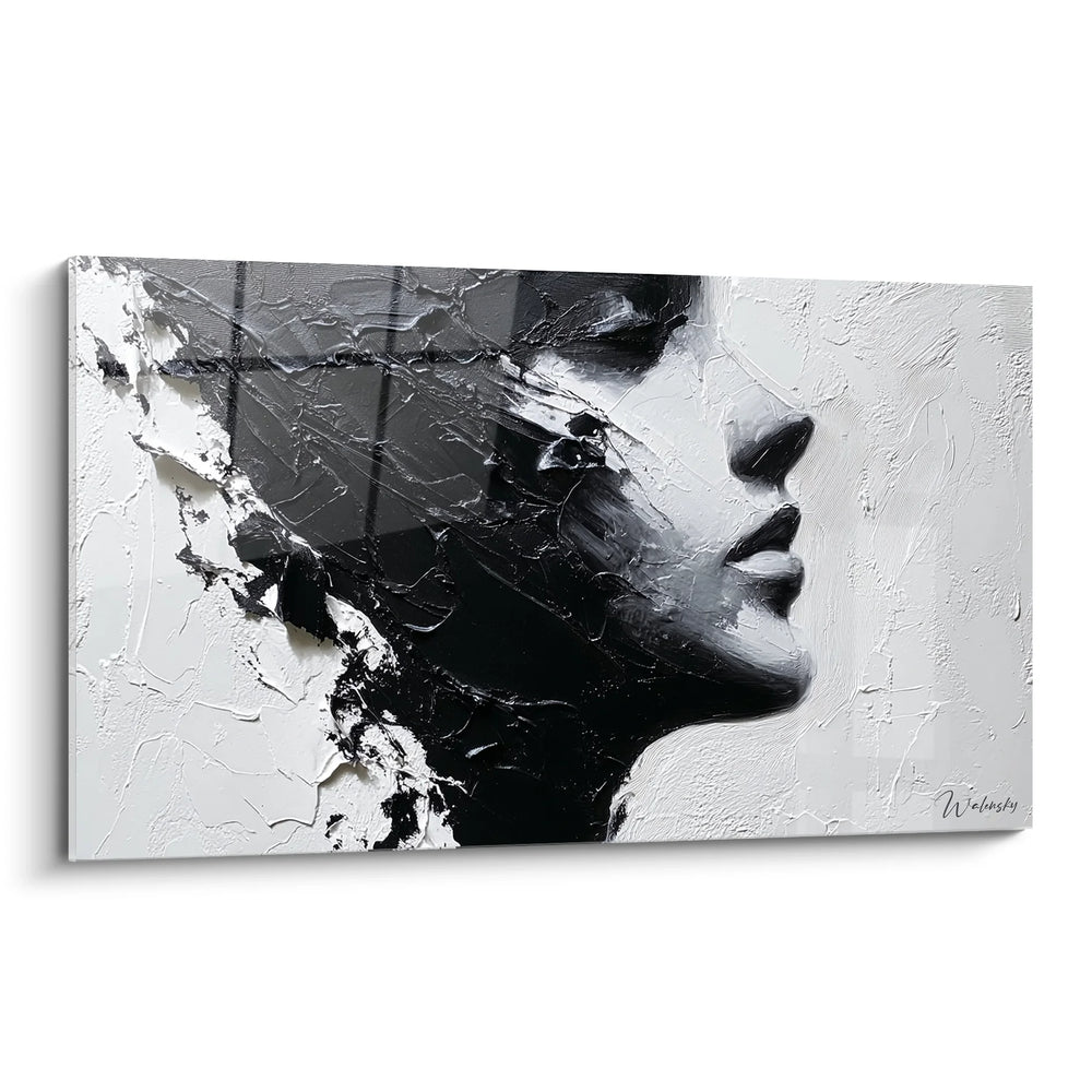 Tags: tableau femme profil, art noir et blanc, portrait moderne, décoration murale, peinture contemporaine