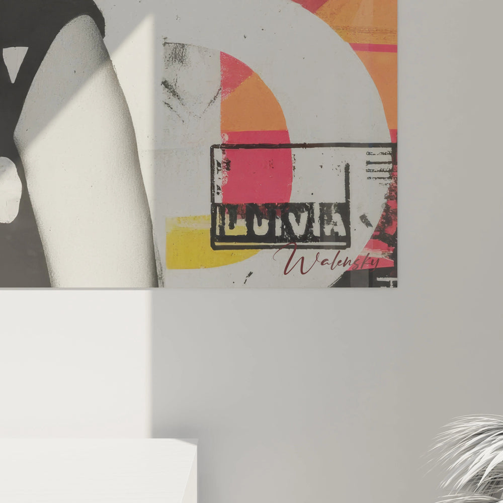 Cette représentation féminine véhicule une symbolique forte liée à l'émancipation et à l'élégance intemporelle vintage. Le noir et blanc du portrait évoque la photographie de mode classique vintage, while les couleurs vives de l'arrière-plan symbolisent la modernité et l'énergie contemporaine. Le jaune représente l'optimisme et la créativité, le rouge passion et détermination, tandis que le turquoise apporte une touche de sérénité. Cette palette chromatique reflète la complexité de la féminité moderne vintage, entre héritage culturel et innovation artistique.