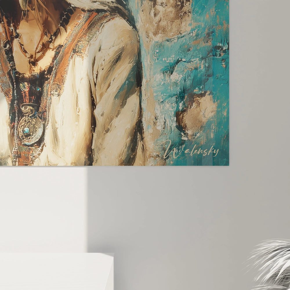 Les éléments distinctifs de cette œuvre femmes orientales authentique résident dans plusieurs détails remarquables. Les bijoux traditionnels ornant les personnages témoignent d'une recherche documentaire approfondie. Les expressions faciales, d'une justesse psychologique rare, révèlent la sensibilité artistique de l'auteur. Cette art mural orientalisme contemporain se distingue par son approche humaniste qui transcende le simple exotisme. Le tableau femmes orientales expression authentique capture une vérité émotionnelle qui élève l'œuvre au-delà de sa dimension décorative.
