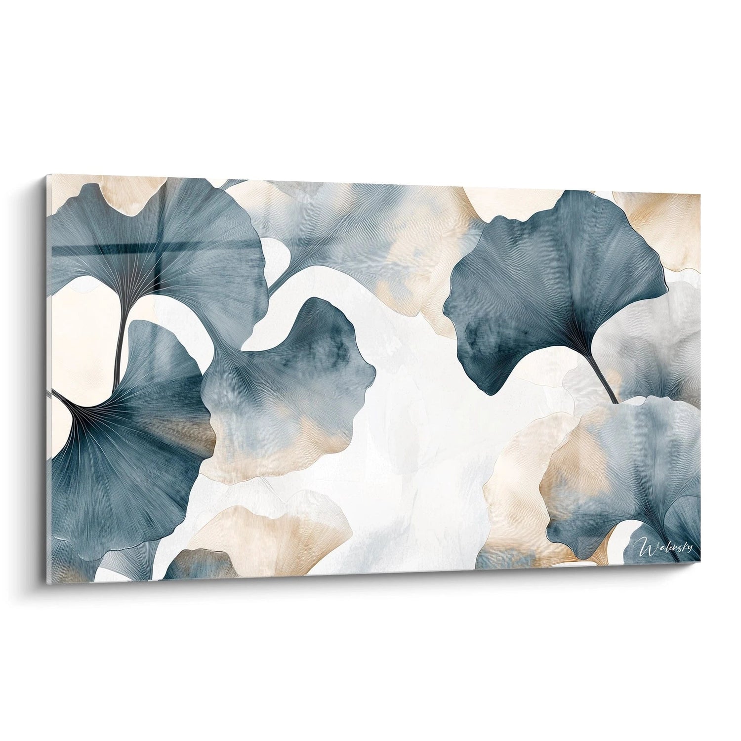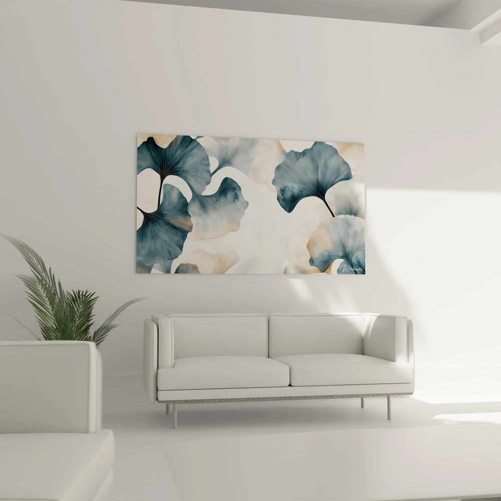 Le ginkgo, symbole ancestral de longévité et de sérénité, se déploie ici dans une composition épurée qui célèbre la beauté fragile de ses feuilles aux formes délicates. Chaque courbe, chaque nuance a été pensée pour capturer non seulement l’apparence, mais aussi l’âme de cet arbre millénaire.