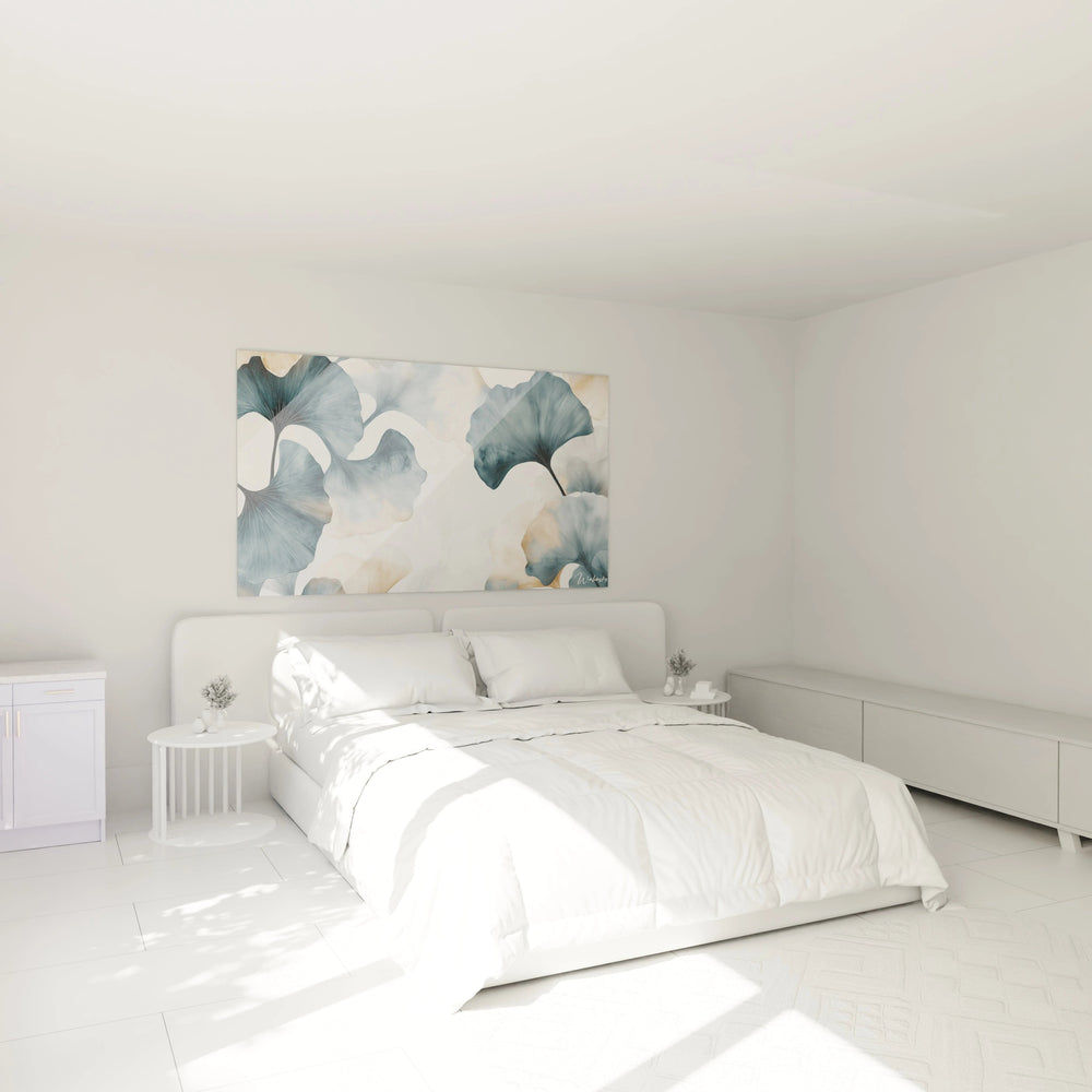 Cette création puise ses racines dans l’art japonais minimaliste et la symbolique profonde du ginkgo, réinterprétés avec une touche contemporaine élégante. La finesse des traits et l’éclat des couleurs plongent votre regard dans un univers de méditation poétique, où chaque détail invite à la contemplation.