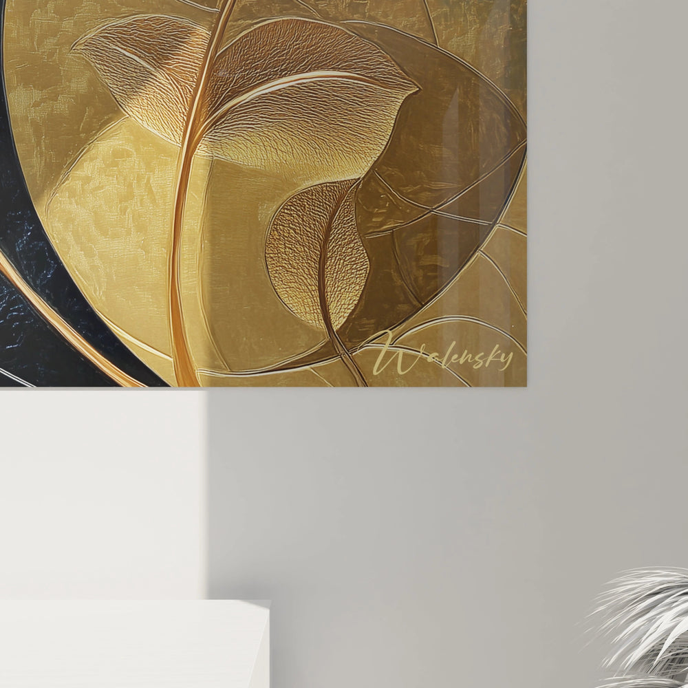 Cette harmonie chromatique du tableau feuilles doré crée une atmosphère apaisante et sophistiquée. Les contrastes sont maîtrisés, évitant les oppositions trop franches au profit de transitions douces et naturelles. L'impact émotionnel de ces choix coloristiques évoque la sérénité et l'élégance contemporaine, parfait pour une décoration murale feuilles haut de gamme.