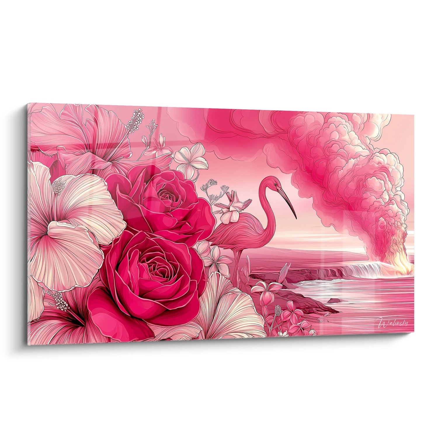 Tags : flamant rose, fleurs tropicales, décoration rose, art floral, tableau tropical, hibiscus, ambiance exotique