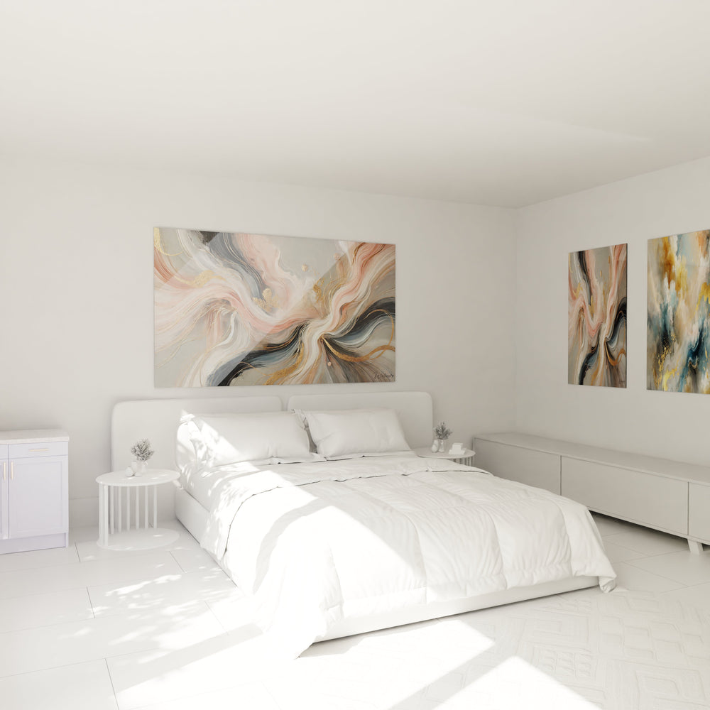 Découvrez un opus exceptionnel qui transcende l’ordinaire : le Tableau Flots de Soie, une création acrylique abstraite qui invite à une expérience sensorielle raffinée. Plus qu’une simple décoration, ce tableau est une ode au mouvement et à la fluidité subtile des éléments naturels, capturant l’instant où souffle le vent sur les feuilles et où l’eau dessine des courants légers.