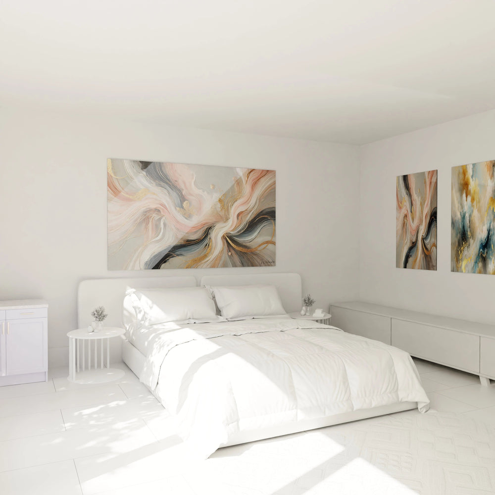 Chaque regard posé sur cette œuvre vous invite à plonger dans un univers où la lumière danse, où l’ombre se déploie avec douceur, et où le temps semble suspendu dans un flot de soie.