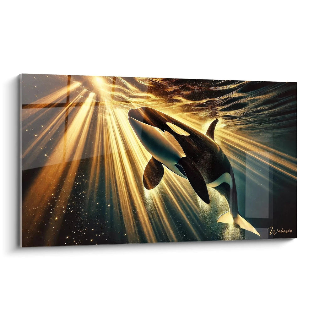 Imaginez l’instant précis où la lumière céleste perce les profondeurs marines, enveloppant l’orque dans une aura chaleureuse et fascinante. Ce tableau capture cette harmonie rare, où la force indomptable de la créature marine rencontre la douceur apaisante des rayons dorés. Chaque regard porté sur cette scène vous transporte dans une ambiance mystique, suscitant autant d’admiration que de sérénité.