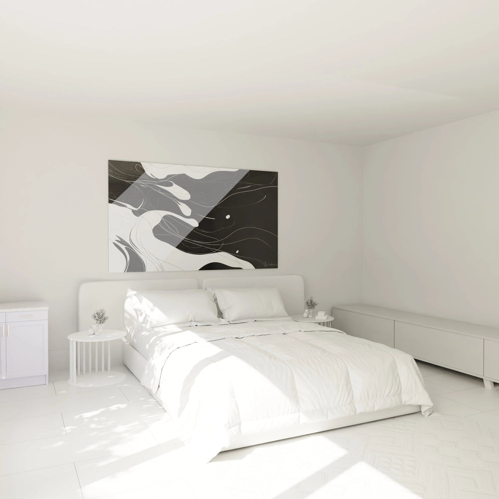 La maîtrise du noir, blanc et gris confère à ce tableau un relief complexe, presque sculptural. Les transitions douces et les courbes fluides évoquent une respiration visuelle unique, où chaque regard découvre un nouveau détail, un mouvement inattendu. Ce raffinement de contraste ajoute une profondeur émotionnelle qui parle directement à votre sens esthétique.