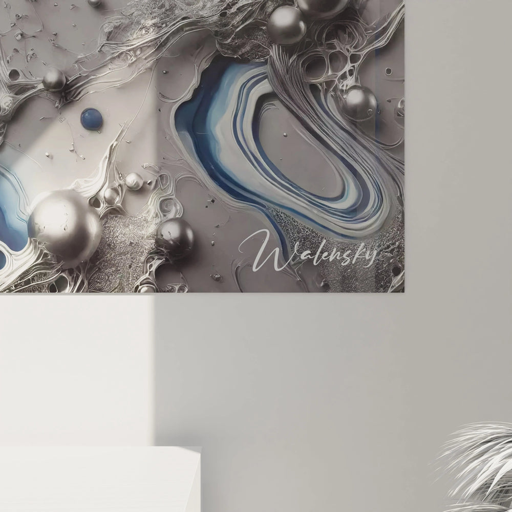 Imaginez-vous devant ce tableau, où le mélange subtil d’argent, de bleu et de gris crée une ambiance à la fois captivante et sereine. C’est une invitation à la rêverie, un souffle de calme qui transforme instantanément l’atmosphère de votre pièce. Que ce soit dans un salon contemporain ou un bureau où la créativité doit jaillir, ce tableau apporte un équilibre parfait entre modernité et poésie.