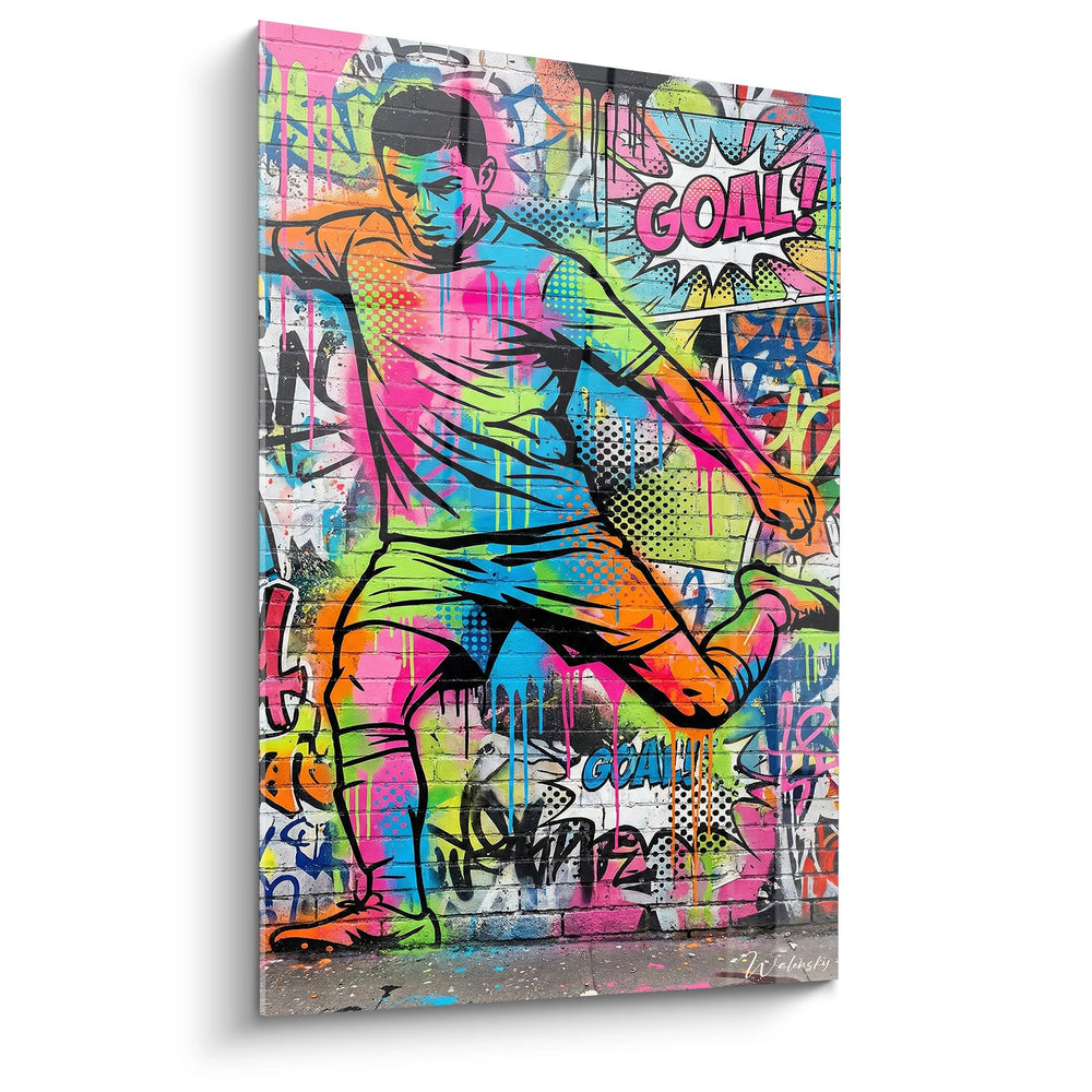 Tags: street art football, tableau graffiti sport, art urbain footballeur, décoration football moderne, toile street art goal