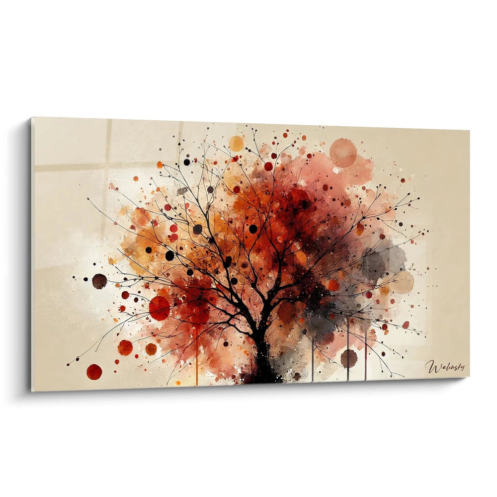 Ce tableau est né d’une promenade matinale, lorsque la nature s’éveille dans sa plus belle métamorphose. L’artiste a voulu retranscrire cette harmonie entre la fragilité des branches et la vitalité des couleurs automnales, offrant une vision où chaque cercle coloré symbolise une feuille qui tourbillonne doucement vers le sol. Plus qu’une simple décoration, ce tableau devient un récit visuel, mêlant mélancolie et promesse, évoquant le cycle de la vie avec élégance et profondeur.