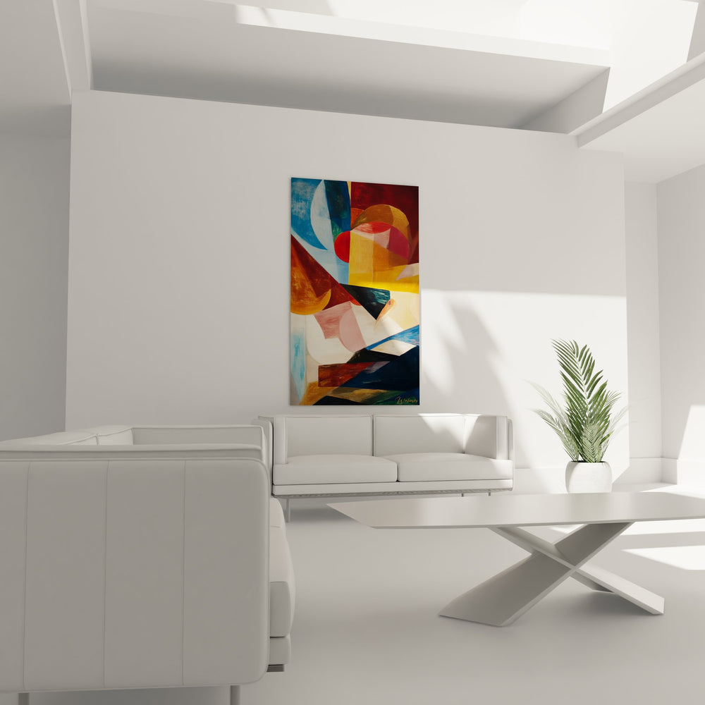 Tags : tableau dessin abstrait, art géométrique moderne, décoration murale colorée, peinture abstraite contemporaine, formes géométriques design