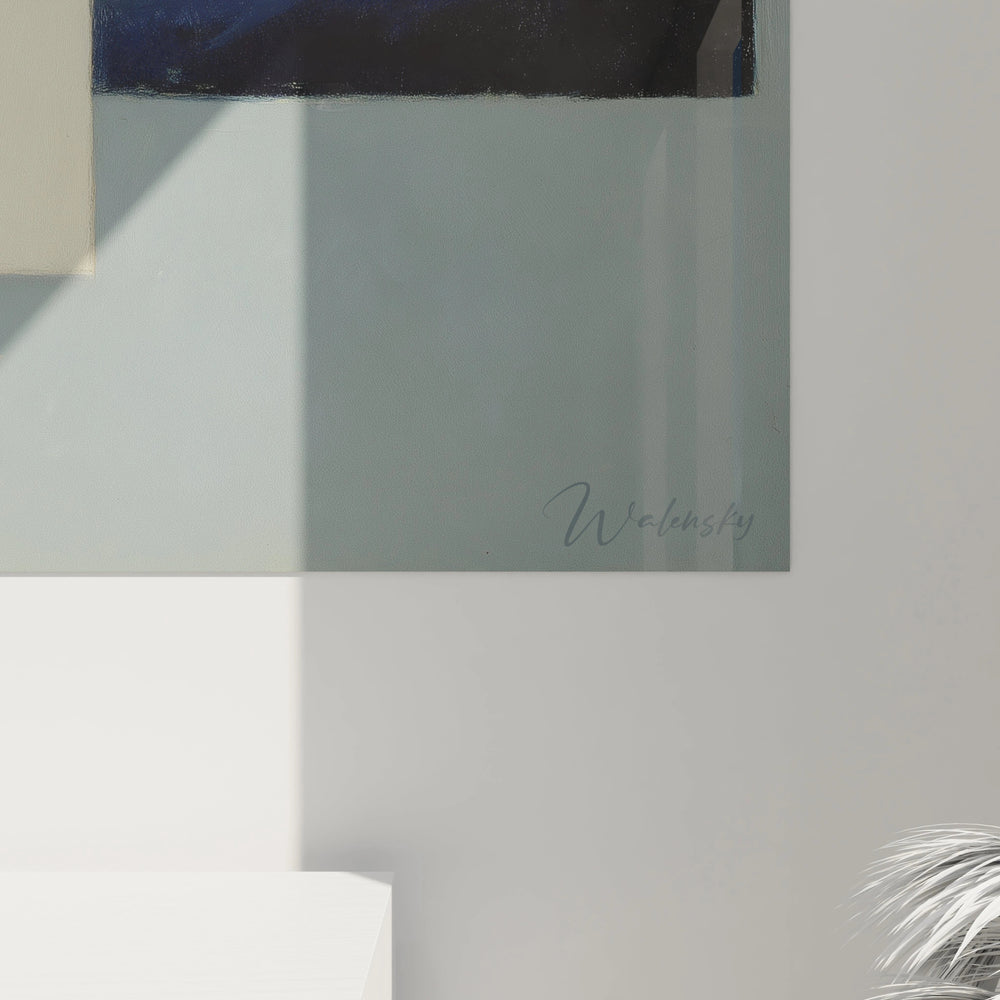 L'originalité de cette art mural composition abstraite réside dans la coexistence harmonieuse entre rigueur géométrique et liberté organique. Les formes serpentines qui traversent la composition créent un lien narratif entre les différents éléments géométriques statiques. La signature de l'artiste, discrètement placée en bas à droite, authentifie cette pièce unique. Les proportions des cercles et leur disposition asymétrique génèrent un rythme visuel particulier impossible à reproduire. Cette décoration murale design unique se distingue par son équilibre entre contrôle et spontanéité, caractéristique d'un style artistique mature.