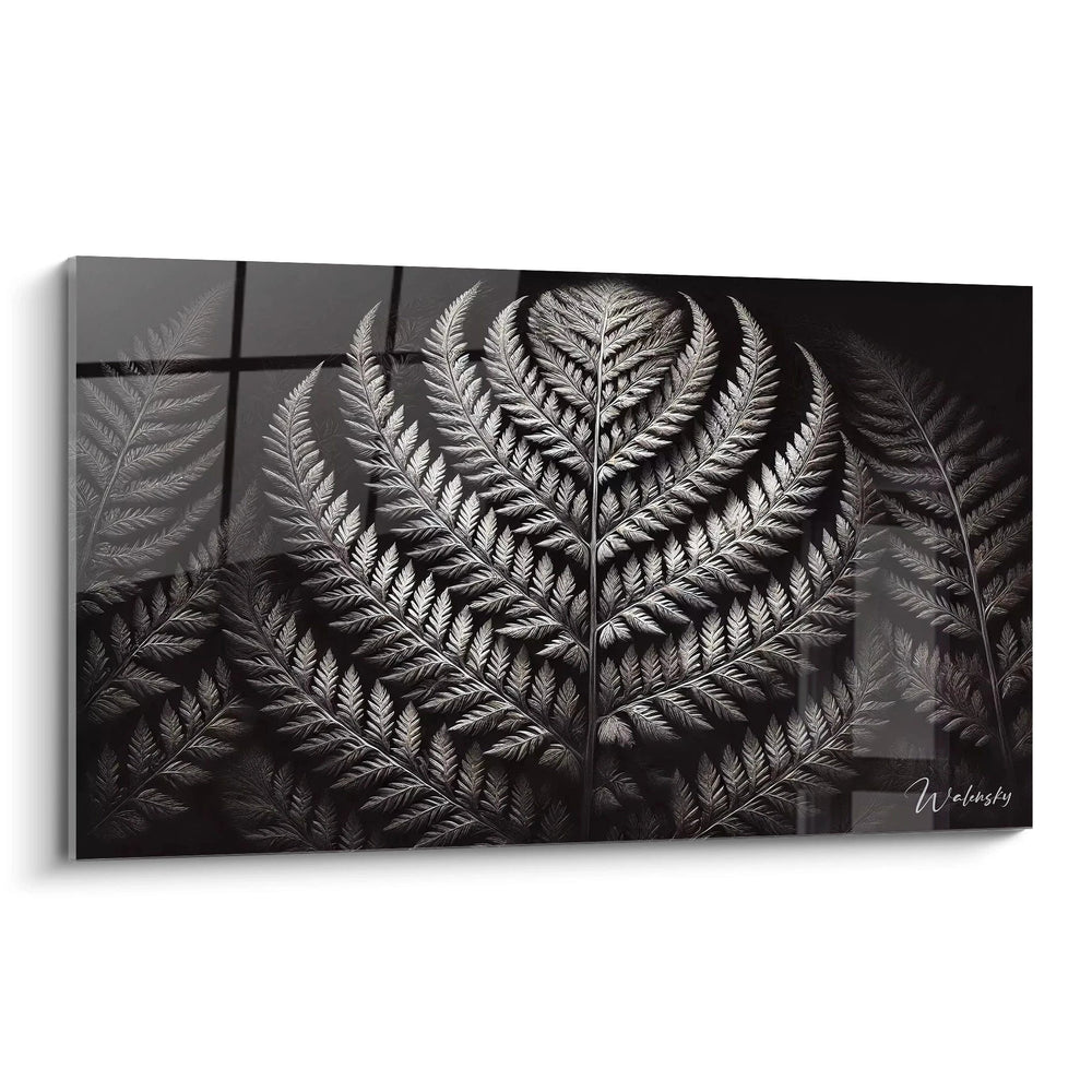 Le Tableau Fougère Nocturne joue avec un subtil équilibre entre ombre et lumière, évoquant la sérénité apaisante des forêts profondes sous la couverture de la nuit. Les nuances de noir, gris et argent se marient pour composer un paysage qui semble à la fois réel et presque féérique. Chaque détail finement travaillé devient une invitation à la contemplation, à l’émerveillement des formes naturelles déployées avec une précision presque hypnotique.