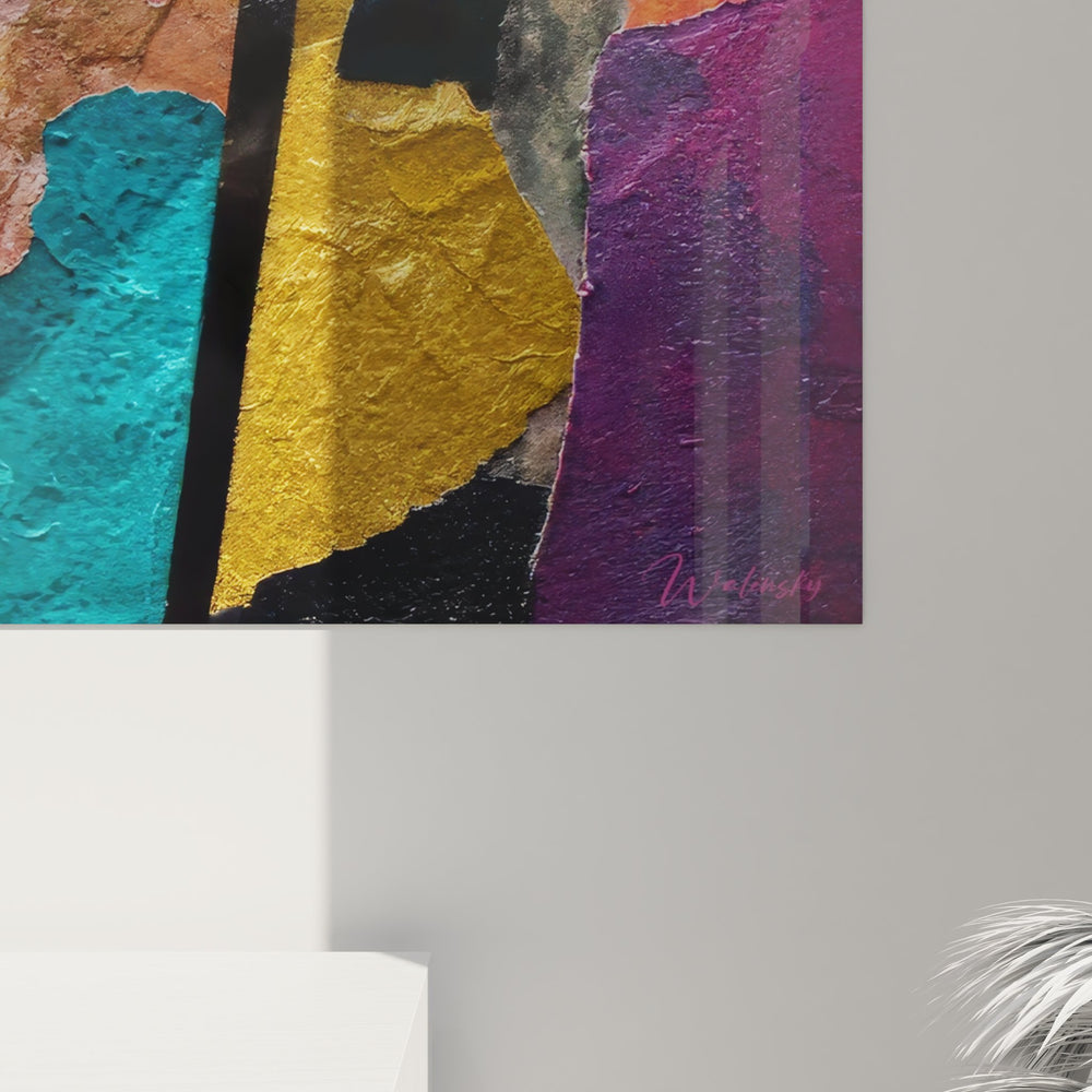 Tags : tableau collage moderne, art mural contemporain, décoration intérieure colorée, œuvre abstraite géométrique, art neurosciences