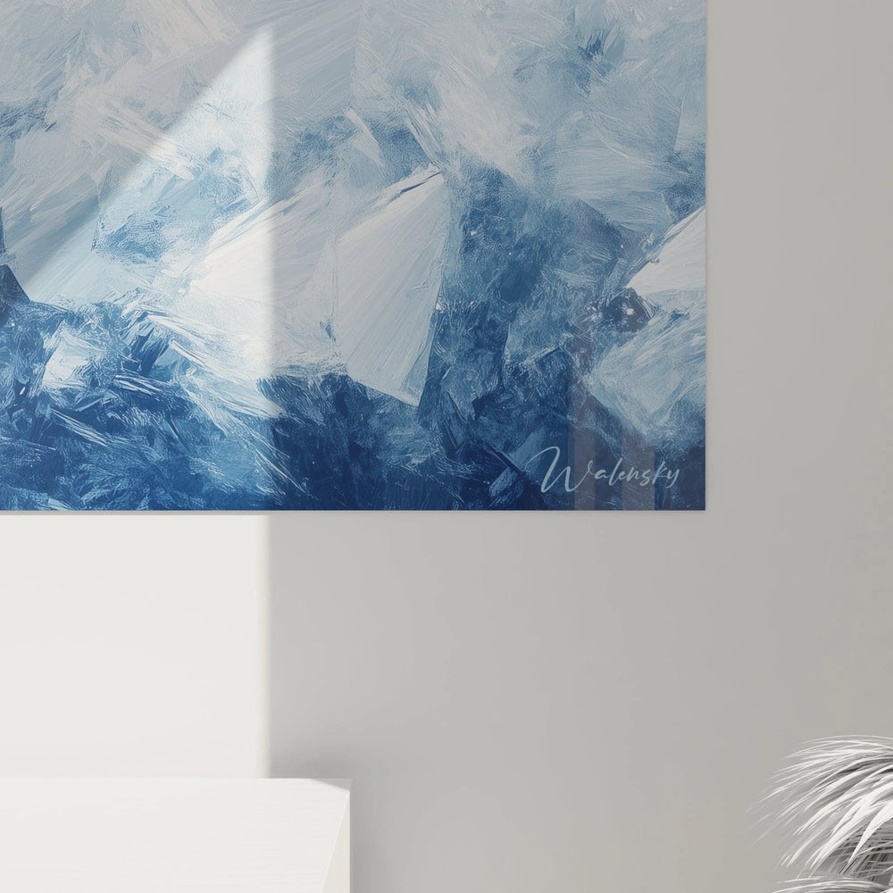 L'expérience de ce tableau abstrait bleu glacier se transforme selon la distance d'observation. À distance, l'œuvre révèle sa composition globale harmonieuse et son impact chromatique puissant. L'approche progressive dévoile les subtilités des transitions colorées et la complexité des superpositions. L'examen rapproché permet de découvrir les détails techniques fins : les variations de texture, les effets de matière subtils, et la précision des contours. Cette décoration murale abstraite glacier offre ainsi une expérience visuelle évolutive qui se renouvelle à chaque observation. La profondeur optique créée par les jeux de transparence et d'opacité donne l'impression d'explorer un paysage cristallin en constante métamorphose, révélant toujours de nouveaux aspects selon l'éclairage ambiant.