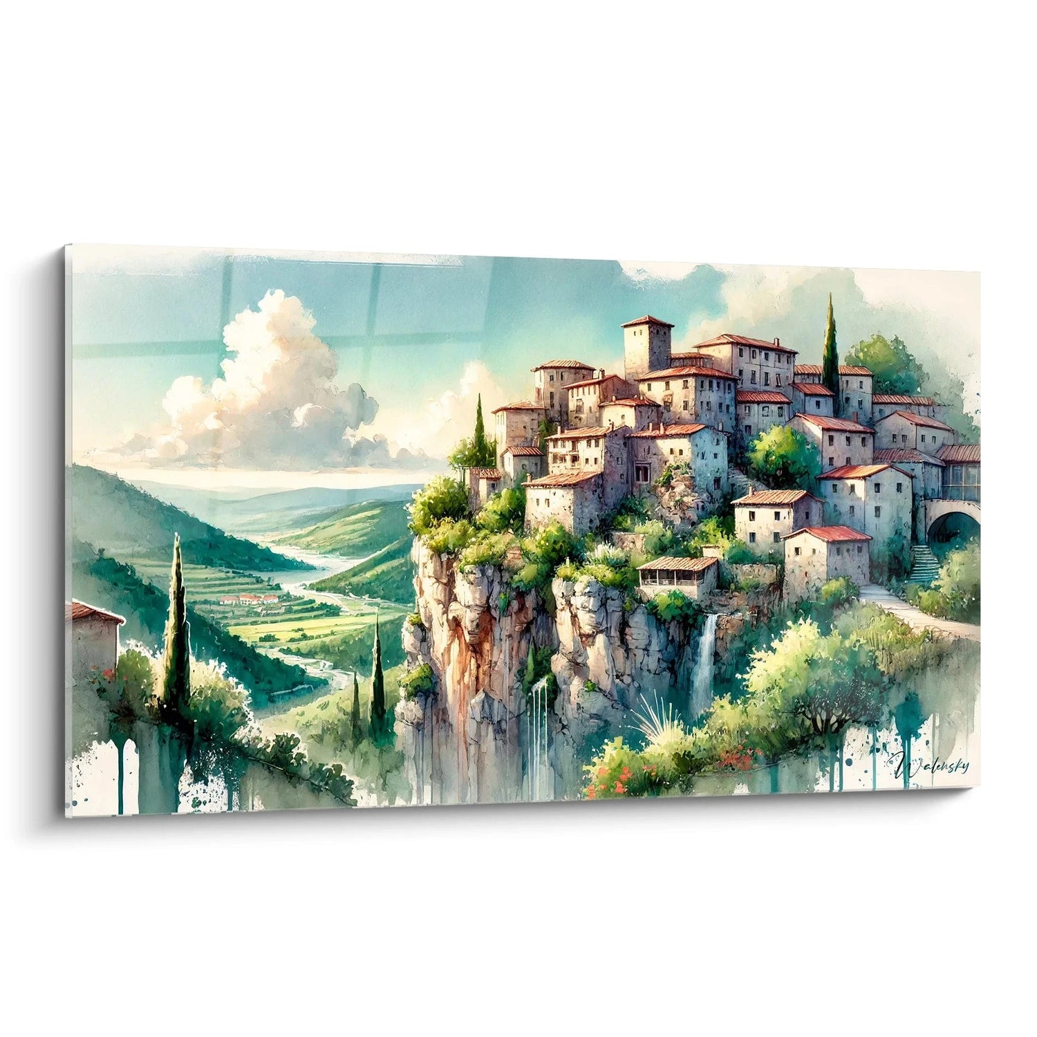 Cette création évoque les promenades paisibles au milieu des montagnes verdoyantes, bercées par le chant des cigales et la douceur du vent du Sud. Les nuances subtiles mêlent un vert luxuriant, un beige chaleureux des pierres anciennes, et des éclats rouges sur les toits, créant une harmonie visuelle qui apaise et inspire. En contemplant ce tableau, sentez la fraîcheur des collines et laissez-vous envelopper par la quiétude d’un instant suspendu.