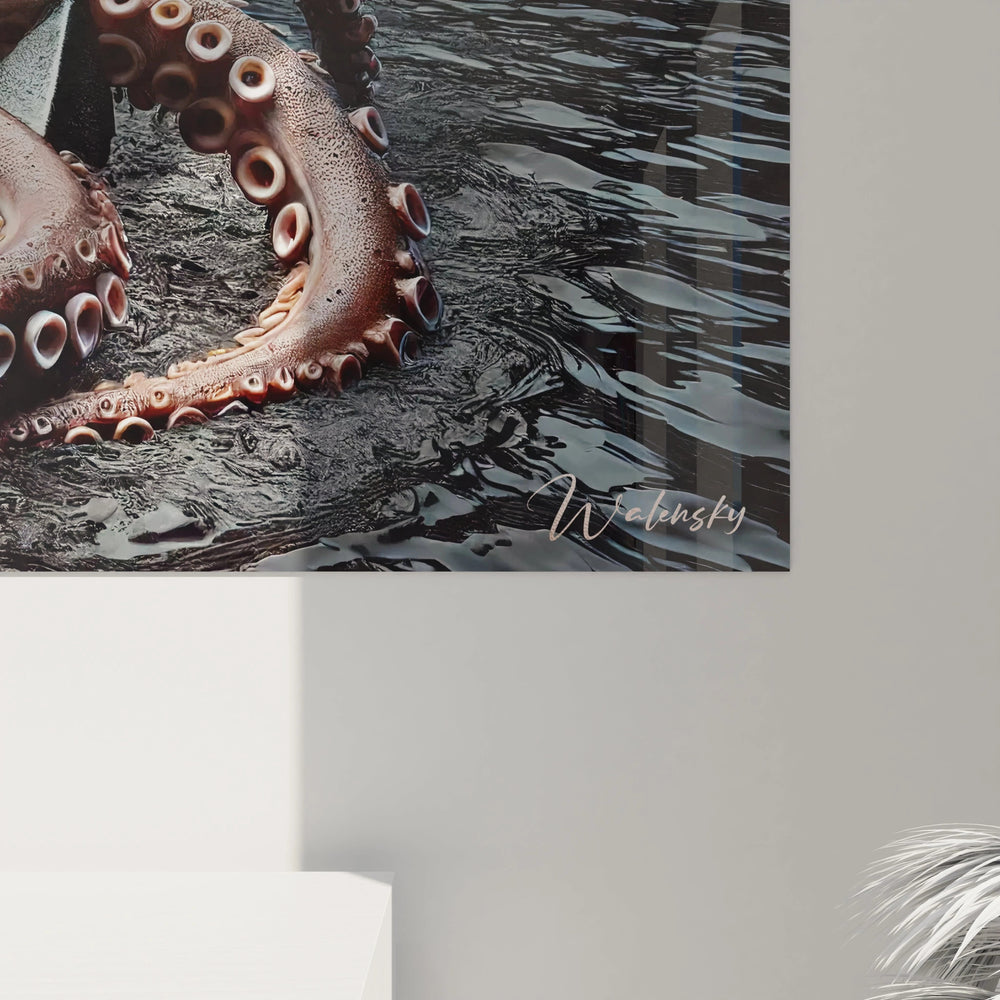 Imaginez la douceur sensuelle des tentacules effleurant la froideur métallique de l’ancre, comme une danse entre deux mondes. Cette tension harmonieuse entre force et fragilité, fluidité et robustesse, apporte à votre pièce une atmosphère à la fois puissante et contemplative. Le tableau joue avec des teintes chaudes et profondes – rouges, noirs et bronzes – qui plongent le spectateur dans un univers où le mystère des océans s’anime sous vos yeux.