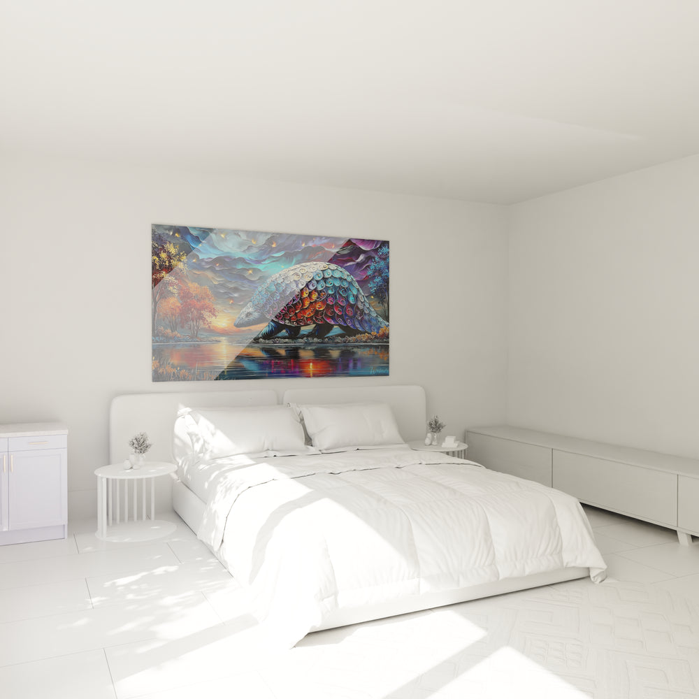 Tags : tatou fantastique, art digital, tableau décoratif, écailles iridescentes, paysage mystique