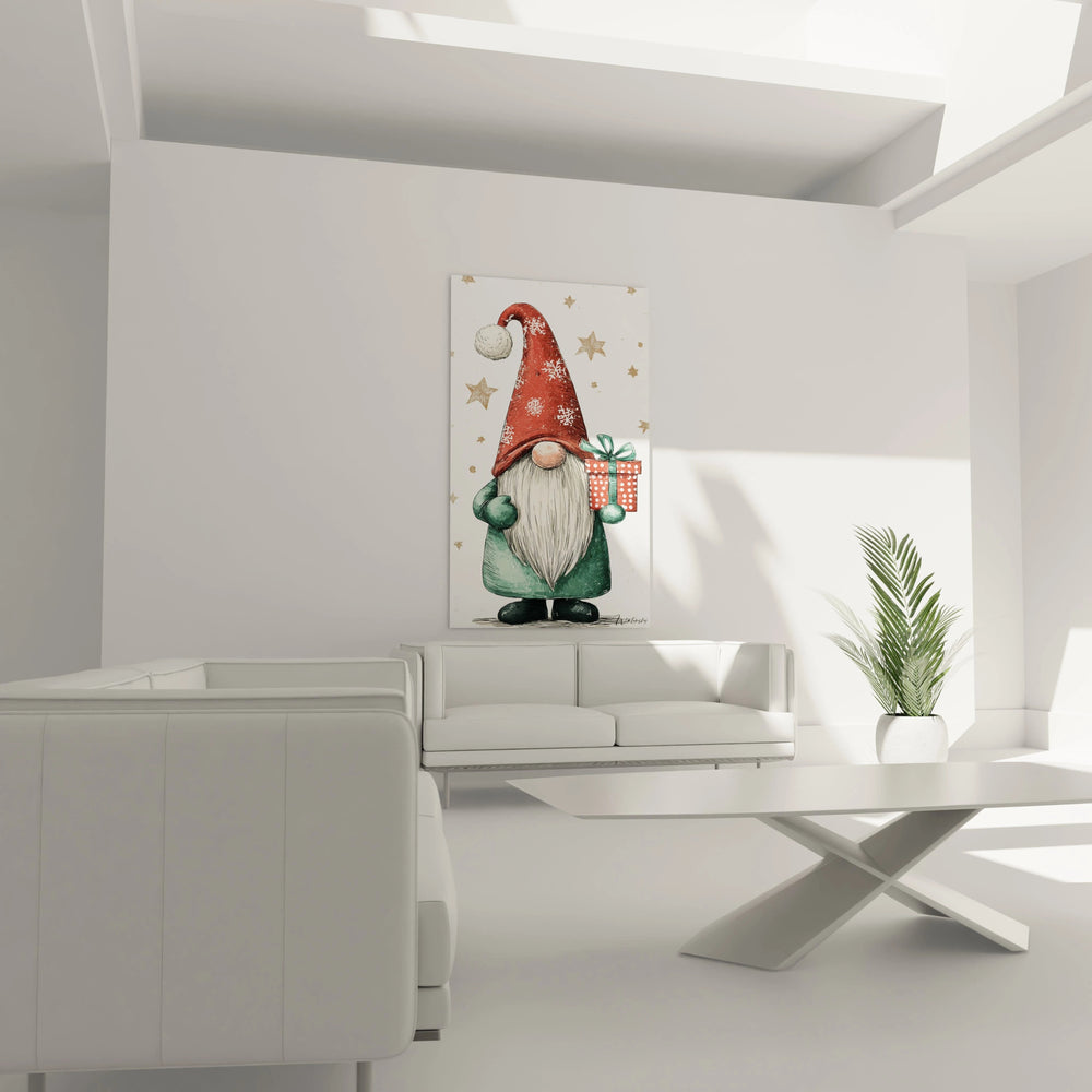 Donnez à votre espace un touche de magie avec le Tableau Gnome Porteur de Présents - édition Noël. Ce tableau exquis ne se contente pas d'être une simple décoration, mais une véritable œuvre d'art qui évoque la chaleur des fêtes et l'émerveillement de la saison.