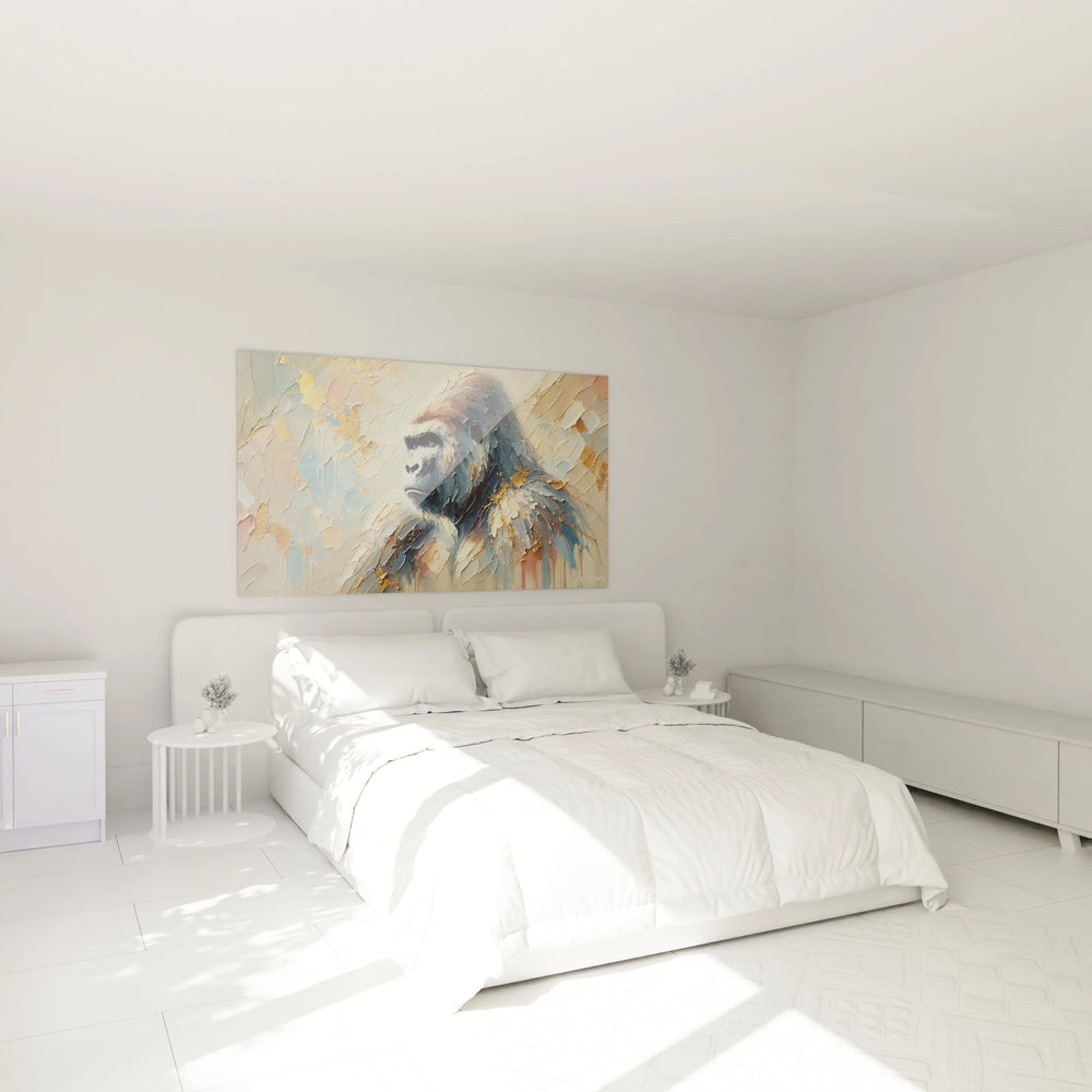 Plongez dans un univers où la force tranquille rencontre l’élégance subtile avec ce Tableau Gorille Sacré - Édition Gorille Animaux. Plus qu’une simple décoration murale, cette œuvre incarne la majesté intemporelle d’un animal fascinant, capturé au cœur d’une ambiance onirique et précieuse qui sublime votre intérieur.