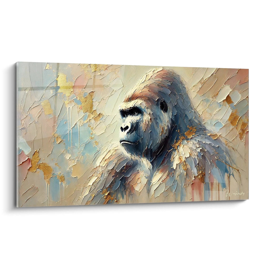 Imaginez le regard profond et chargé d’émotions d’un gorille, à la fois puissant et empreint de douceur, posé au centre d’un décor stylisé évocateur de la jungle. Ce tableau dégage une énergie unique, mêlant calme, respect et protection. Chaque détail invite au silence et à la contemplation, transformant n’importe quel espace en un véritable sanctuaire de paix et de réflexion.