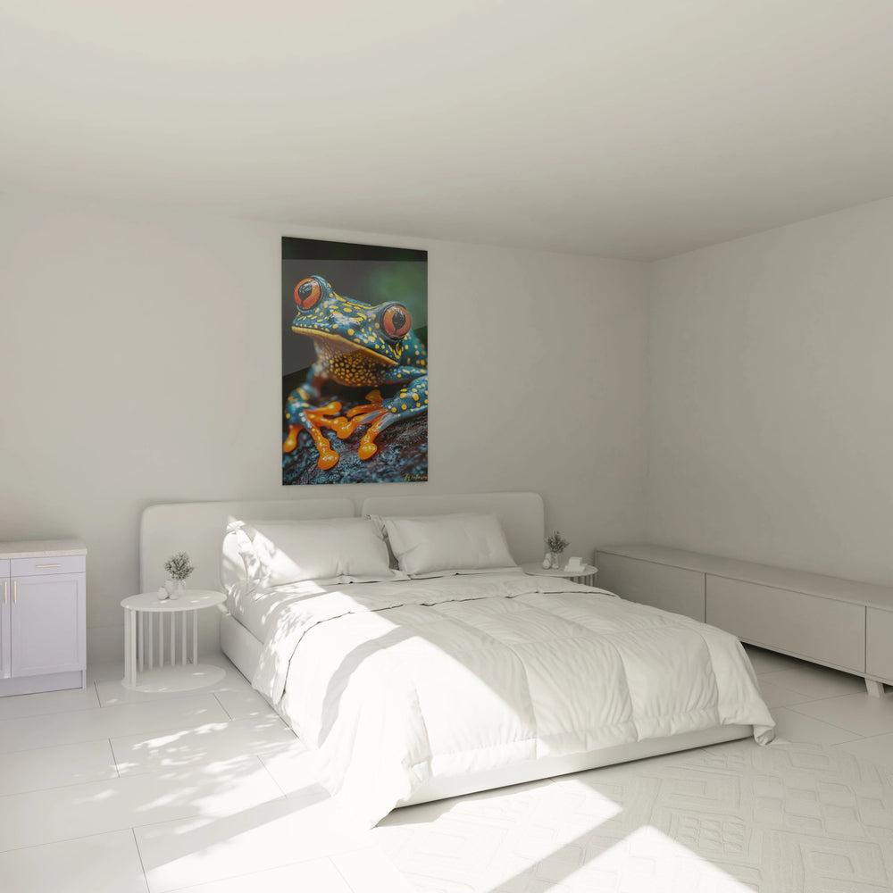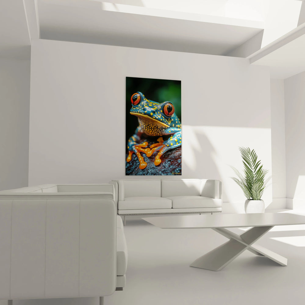 Plongez dans un univers vibrant et mystérieux avec le Tableau grenouille N°2 - Edition Animaux, une œuvre qui évoque la splendeur discrète des forêts tropicales. Imaginé par un artiste passionné, ce tableau sublime la beauté singulière d’une grenouille arboricole aux teintes éclatantes, révélant ainsi un fragment de biodiversité souvent méconnu, mais d’une richesse incomparable.