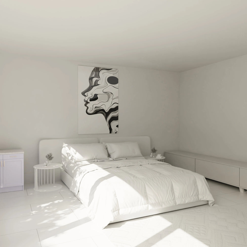 En limitant sa palette aux variations subtiles du noir, blanc et nuances de gris, ce tableau privilégie la pureté des formes et des textures. Cette sobriété chromatique accentue la profondeur et la finesse du dessin, vous enveloppant d’un univers visuel à la fois contemporain et intemporel, qui résonne comme un souffle apaisant au cœur de votre décoration.