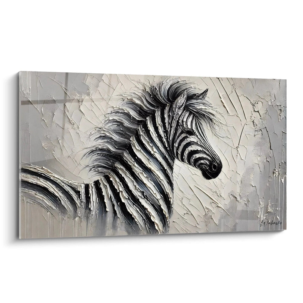 Cette création capture la dualité fascinante de la nature par un jeu subtil de noirs profonds, de blancs éclatants et de gris tout en nuances. Vous ressentirez la texture vivante, presque tactile, qui raconte l’histoire d’un animal majestueux, où chaque rayure incarne un battement de vie, une danse entre ombre et lumière.
