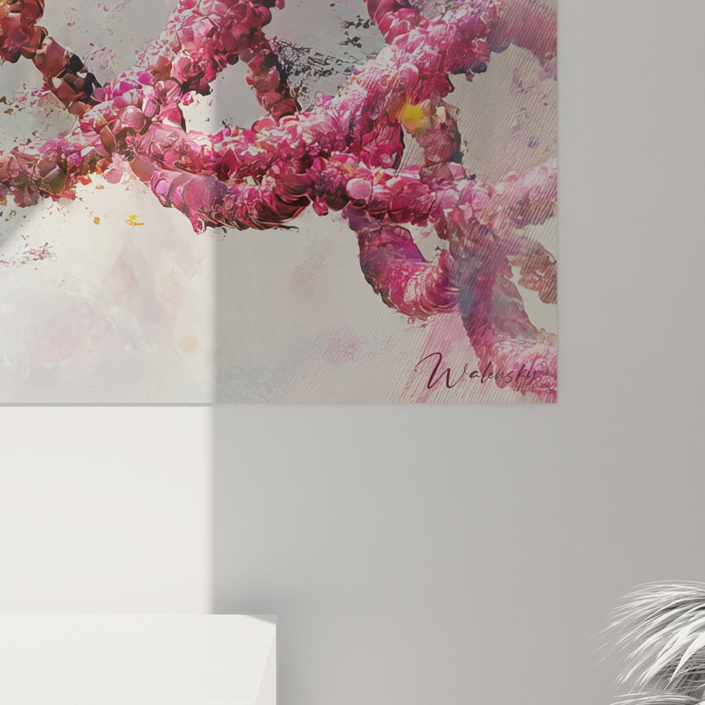 Cette œuvre d'art contemporaine présente une magnifique représentation de la double hélice ADN réalisée dans un style aquarelle moderne. Le tableau mural ADN capture l'essence de la vie à travers une interprétation artistique saisissante de la structure moléculaire fondamentale. Les brins d'ADN entrelacés serpentent gracieusement sur toute la longueur de la toile, créant un mouvement dynamique qui évoque la danse éternelle de la génétique. Cette peinture scientifique décorative transforme un concept biologique complexe en une œuvre visuellement captivante, où chaque nucléotide semble prendre vie dans un tourbillon de couleurs. L'artiste a su marier science et art pour créer ce tableau décoratif génétique qui fascine autant les passionnés de biologie que les amateurs d'art contemporain. La technique de l'aquarelle apporte une fluidité naturelle à cette représentation artistique de l'ADN, suggérant la nature liquide de la vie elle-même. Cette œuvre unique transforme n'importe quel espace en un lieu de contemplation sur les mystères de l'existence.
