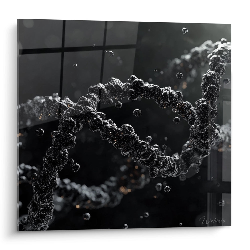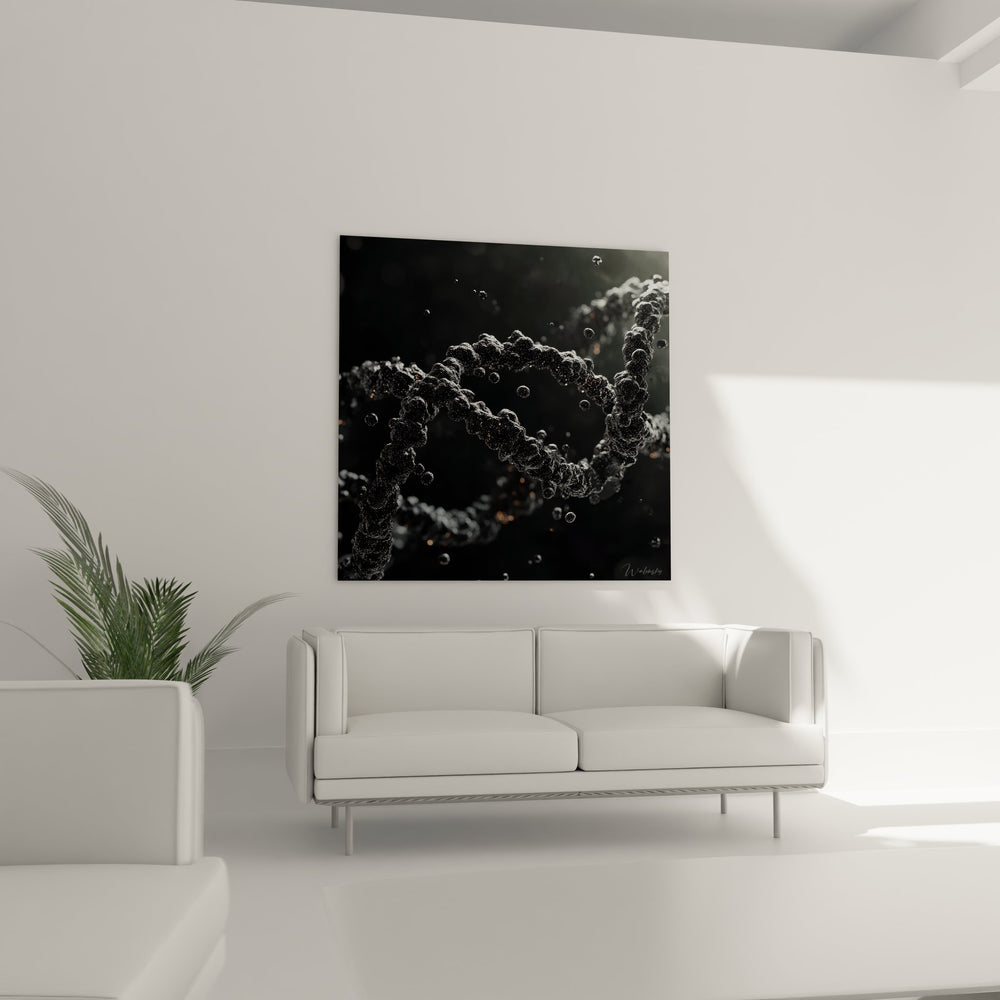 Tags : tableau adn, hélice génétique, art scientifique, décoration moderne, noir et blanc
