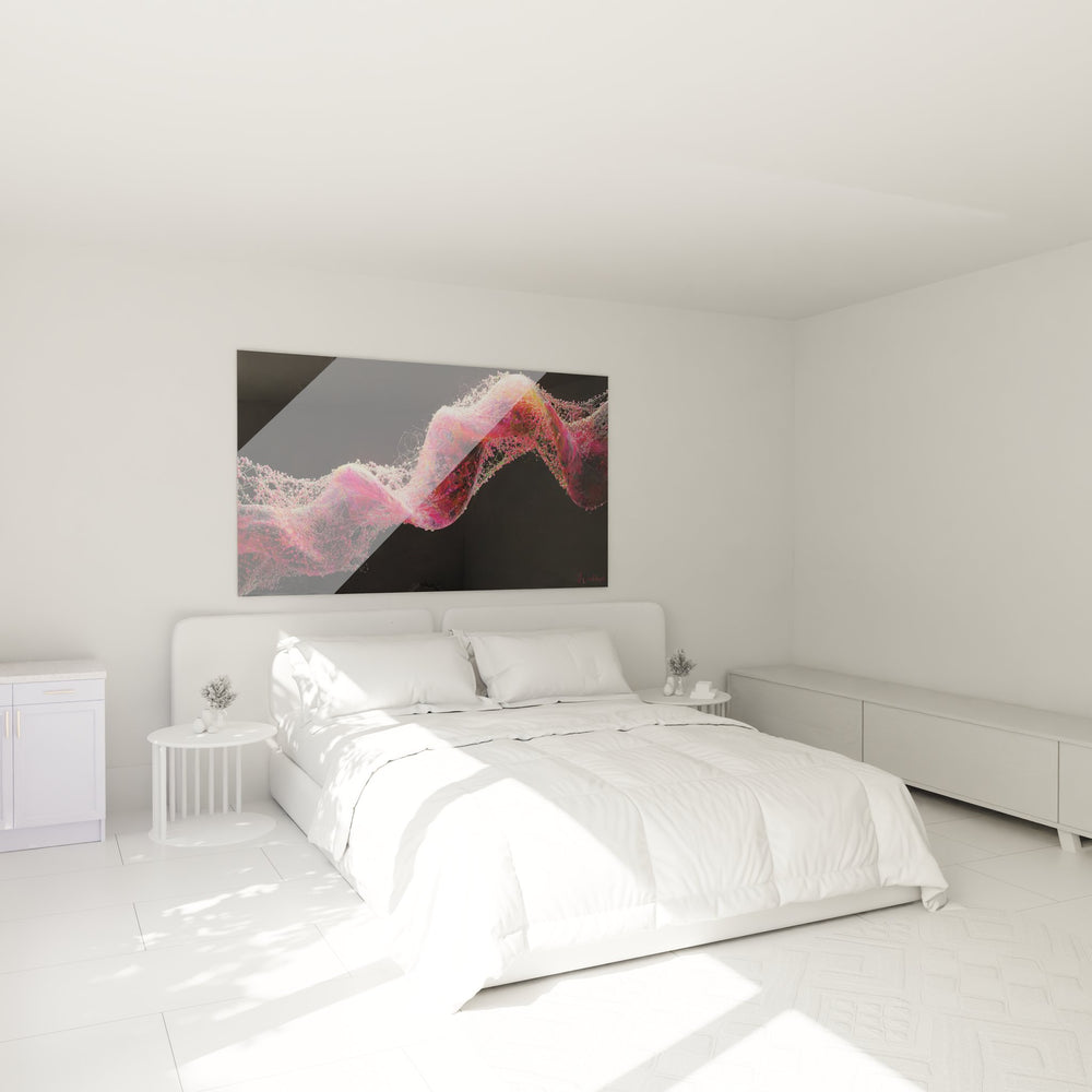 Ce tableau, d'un rose éclatant et orné de brins lumineux délicats, symbiose parfaitement la beauté et la complexité de l'ADN. Il s’inspire des structures naturelles, transformant votre espace en un sanctuaire de sérénité et d'intellectualité. Chaque détail a été soigneusement conçu pour apporter une dimension luxueuse à votre maison.