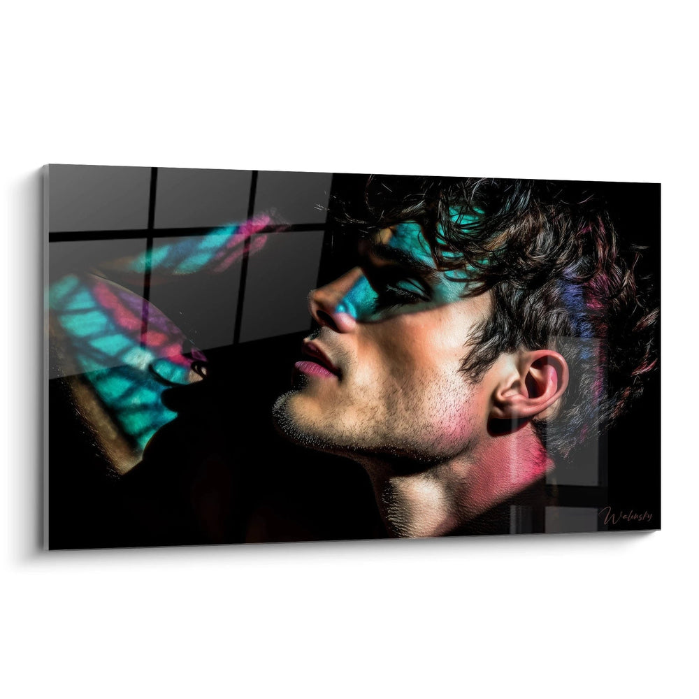 portrait masculin, beauté virile, éclairage coloré, art contemporain, tableau mural moderne