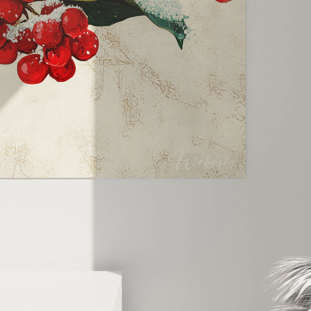 Ce tableau, majestueusement conçu, apporte une touche d'élégance à votre décoration intérieure. Les teintes riches et vibrantes illustrent un houx verdoyant, immortalisant la beauté de la nature durant la saison la plus festive de l'année. Chaque détail est soigneusement pensé pour que ce tableau ne soit pas uniquement un objet décoratif, mais une véritable œuvre d'art.