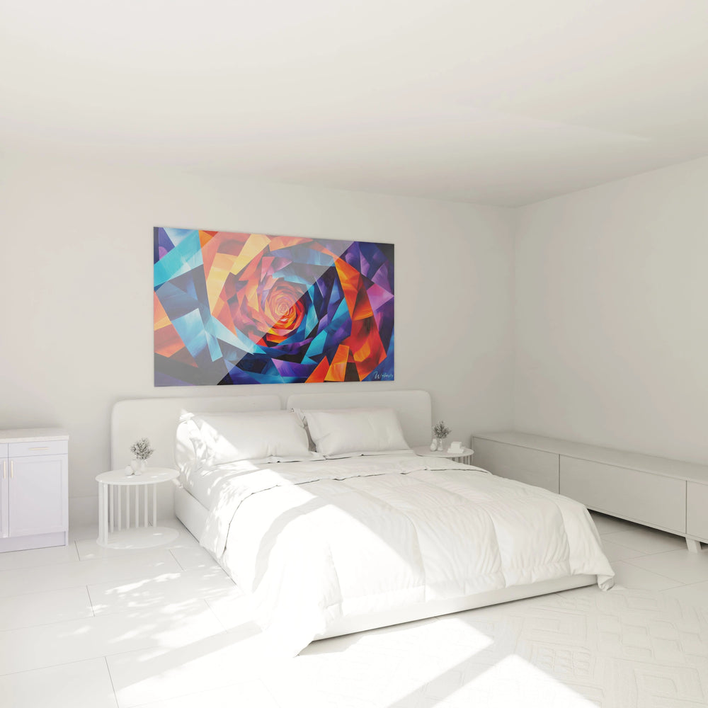 Transformez votre intérieur avec ce tableau exceptionnel où chaque détail invite à un spectacle hypnotique et élégant. Cette œuvre spirale abstraite capture la magie du mouvement infini, mêlant à la perfection dynamisme et profondeur grâce à une géométrie parfaitement fragmentée.