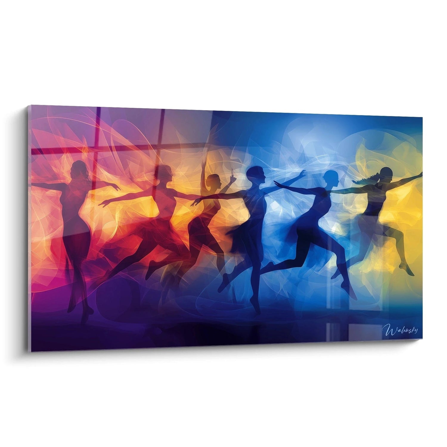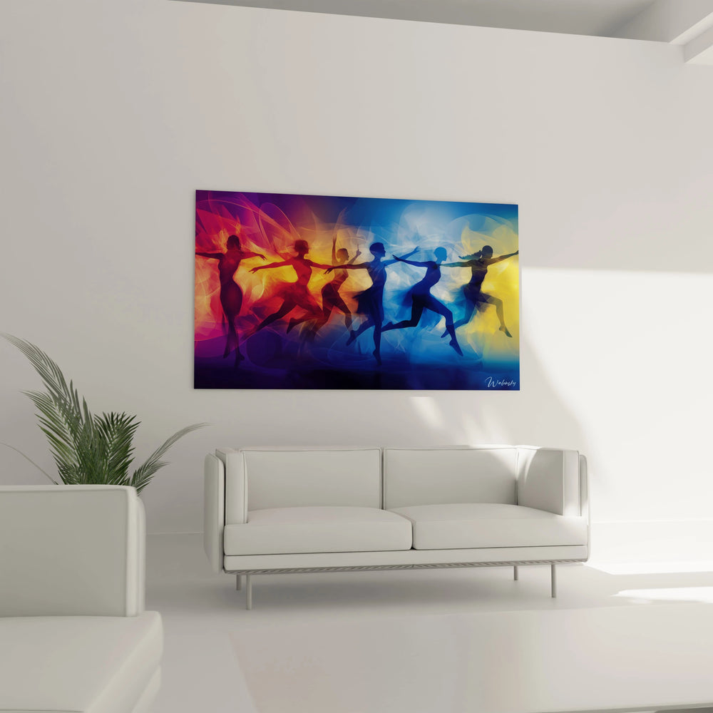 Ce tableau ne se contente pas d’habiller un mur, il insuffle une dynamique unique à votre pièce. Les rouges ardents, les jaunes éclatants et les bleus profonds s’entrelacent avec fluidité, évoquant une chorégraphie vibrante où chaque silhouette semble en mouvement perpétuel. L’équilibre subtil entre teintes chaudes et froides crée une sensation de profondeur et de légèreté qui captera tous les regards.