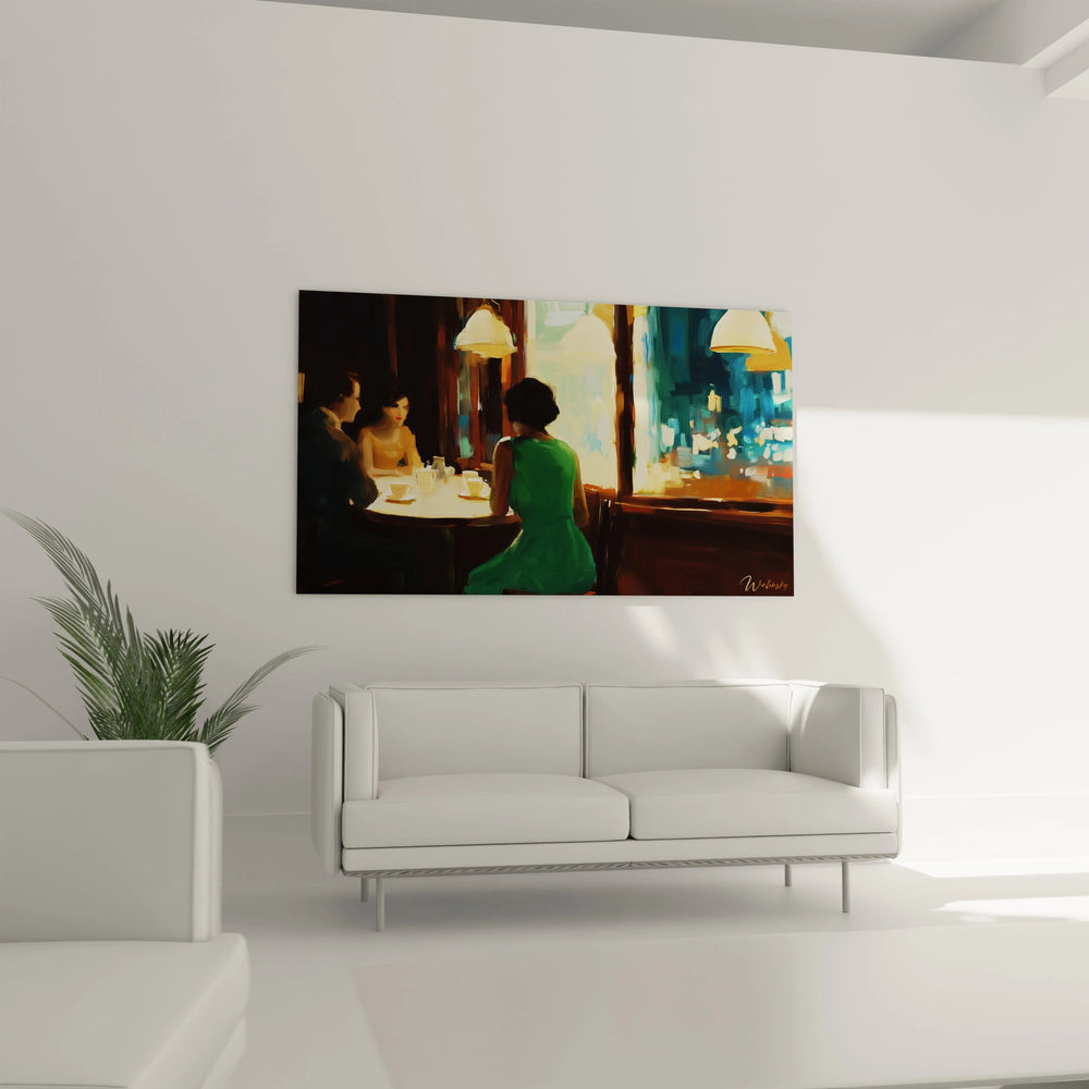 Découvrez une pièce unique qui transforme votre intérieur en un véritable voyage émotionnel. Ce tableau captivant, inspiré par l’univers d’Edward Hopper, saisit l’essence mystérieuse et intimiste des espaces nocturnes. Imaginez-vous plongé dans la douce lumière tamisée d’un café où chaque reflet raconte une histoire, où le silence entre les silhouettes révèle une profondeur rarement explorée. Cette œuvre transcende le simple décor : elle invite à la contemplation et à la nostalgie, créant une atmosphère d’une rare sophistication.