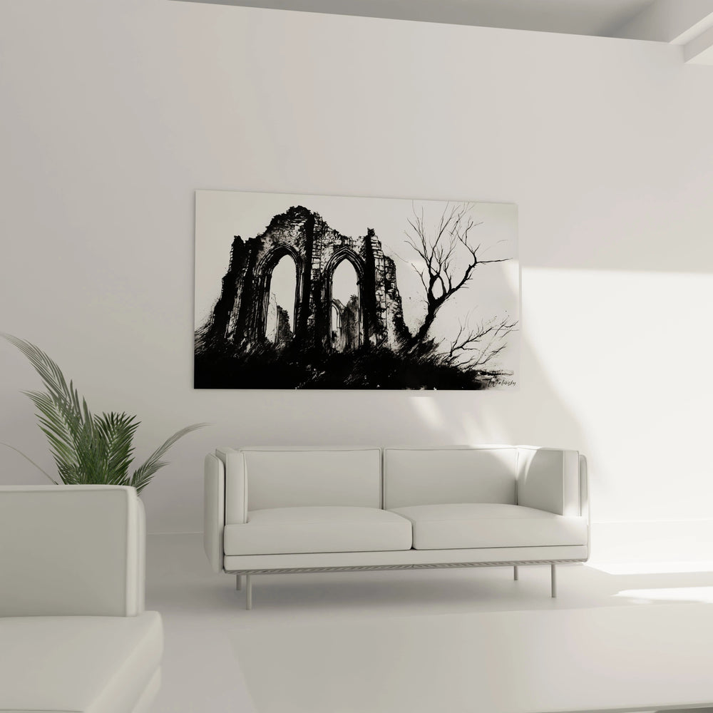 Plongez dans une atmosphère où l’étrange dialogue entre passé et présent s’entrelace avec élégance grâce à ce tableau d’exception. Inspiré par l’univers poignant de Caspar David Friedrich, cette création vous invite à contempler la beauté fugace des ruines gothiques, symbole d’un monde ancien et mystérieux.