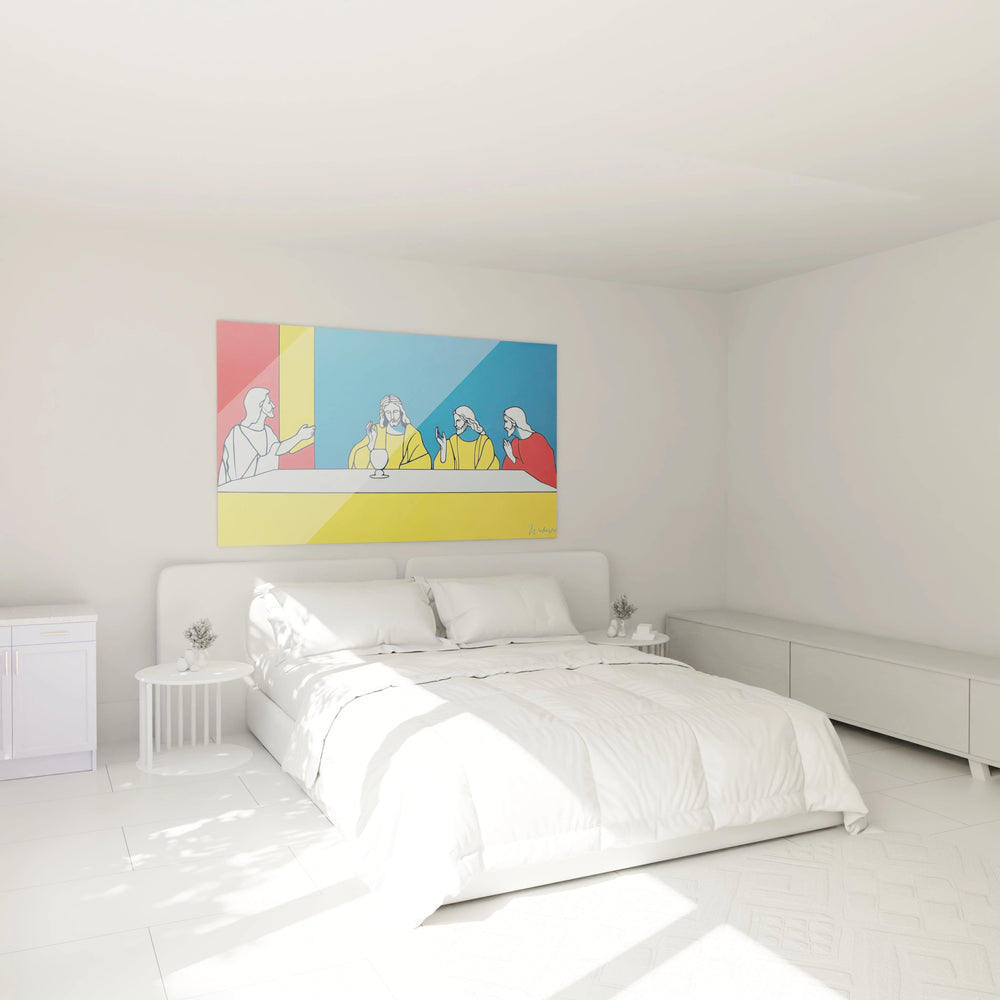 Découvrez une œuvre d’art qui transcende le temps et réinvente un chef-d’œuvre universel dans une interprétation graphique d’une pureté remarquable. Ce tableau inspiré par La Cène de Léonard de Vinci vous invite à plonger au cœur d’une scène historique, réexaminée à travers un prisme minimaliste et vibrant, idéal pour révéler toute la majesté d’un intérieur exigeant.