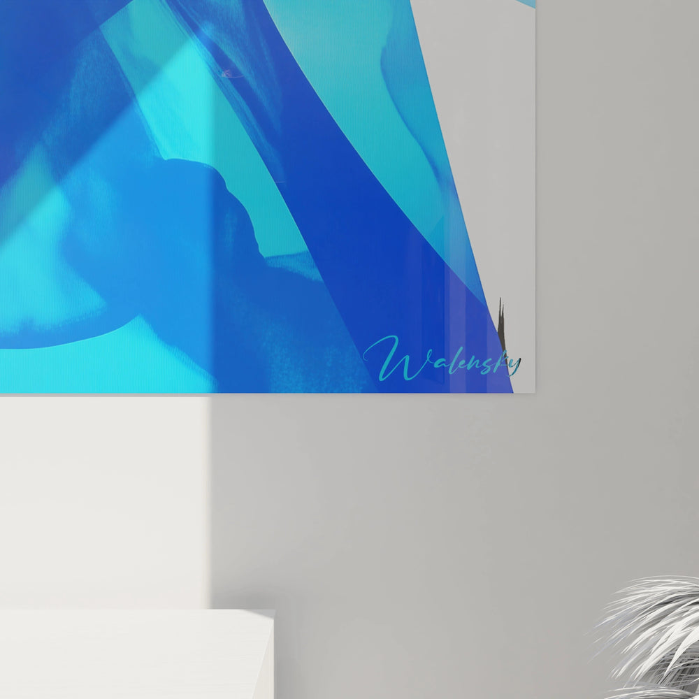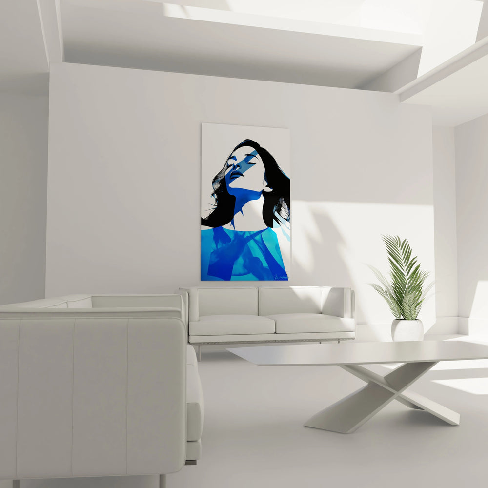 En contemplant cette œuvre, vous êtes invité à plonger dans une atmosphère à la fois apaisante et vibrante. La silhouette de la Dame en bleu, dépouillée de détails superflus, émerge avec force dans un jeu précis de contrastes. Sa présence vous saisit, comme figée dans un moment intemporel où la lumière semble caresser chaque contour avec douceur et intensité.