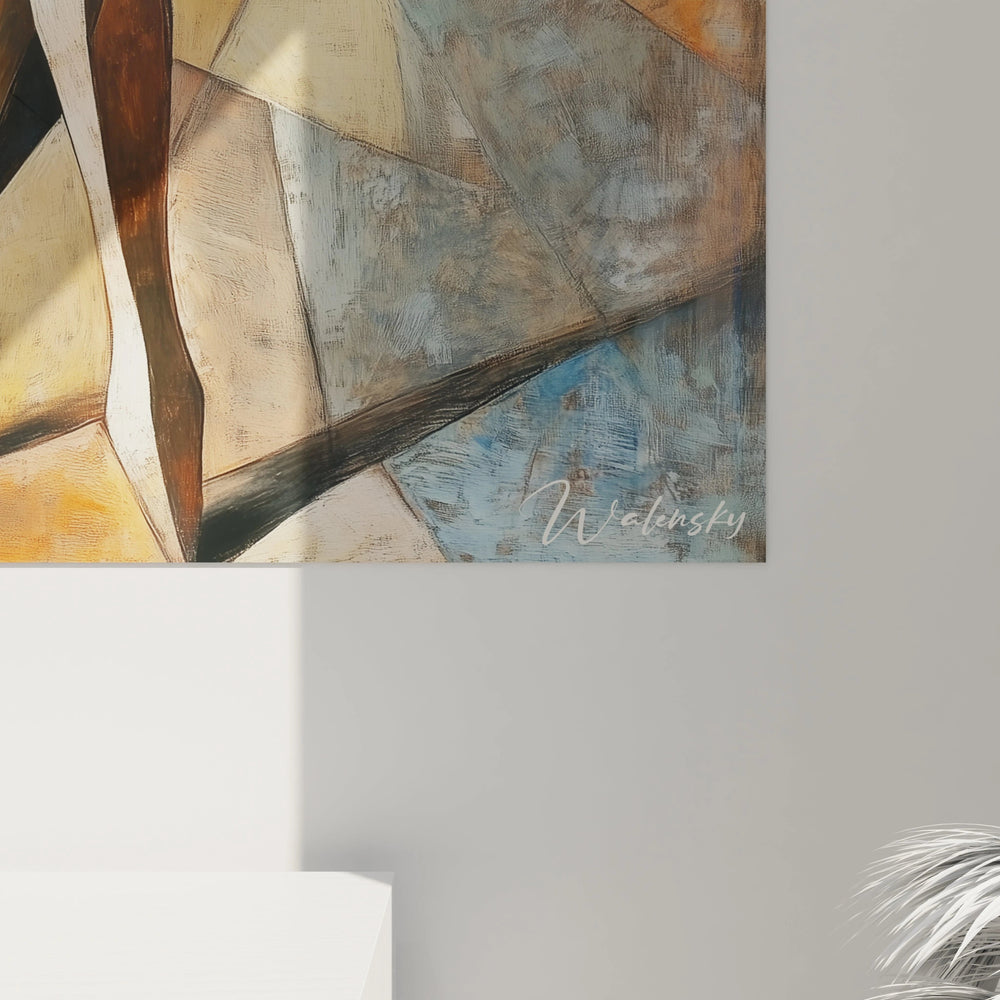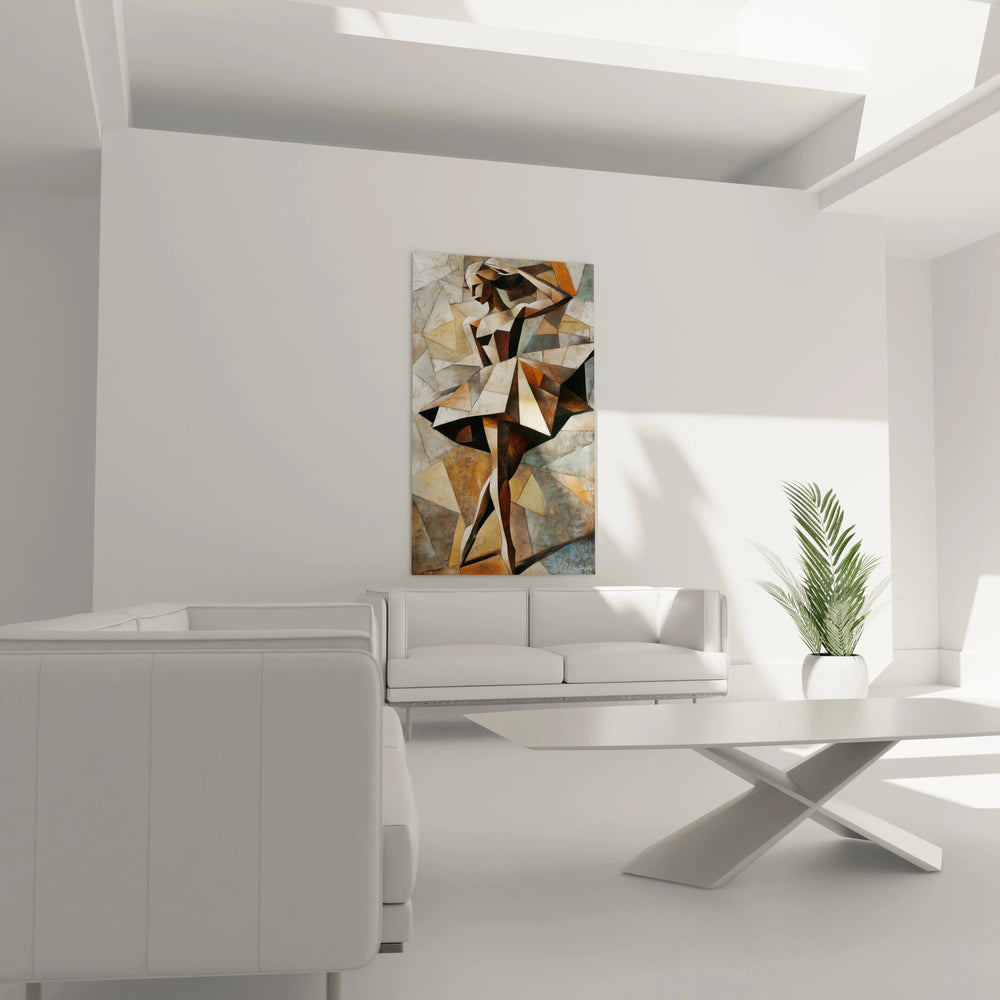 Ce tableau incarne l’alliance parfaite entre le mouvement intemporel de la danse et l’élégance structurée du cubisme. En fragmentant les volumes en facettes anguleuses, il révèle une nouvelle dimension de cette expression artistique, une poésie visuelle où le dynamisme se fait tactile. Les tons chauds et terreux, mariés à des nuances de beige et d’orange, enveloppent la composition d’une atmosphère chaleureuse et profonde, idéale pour sublimer un intérieur moderne.