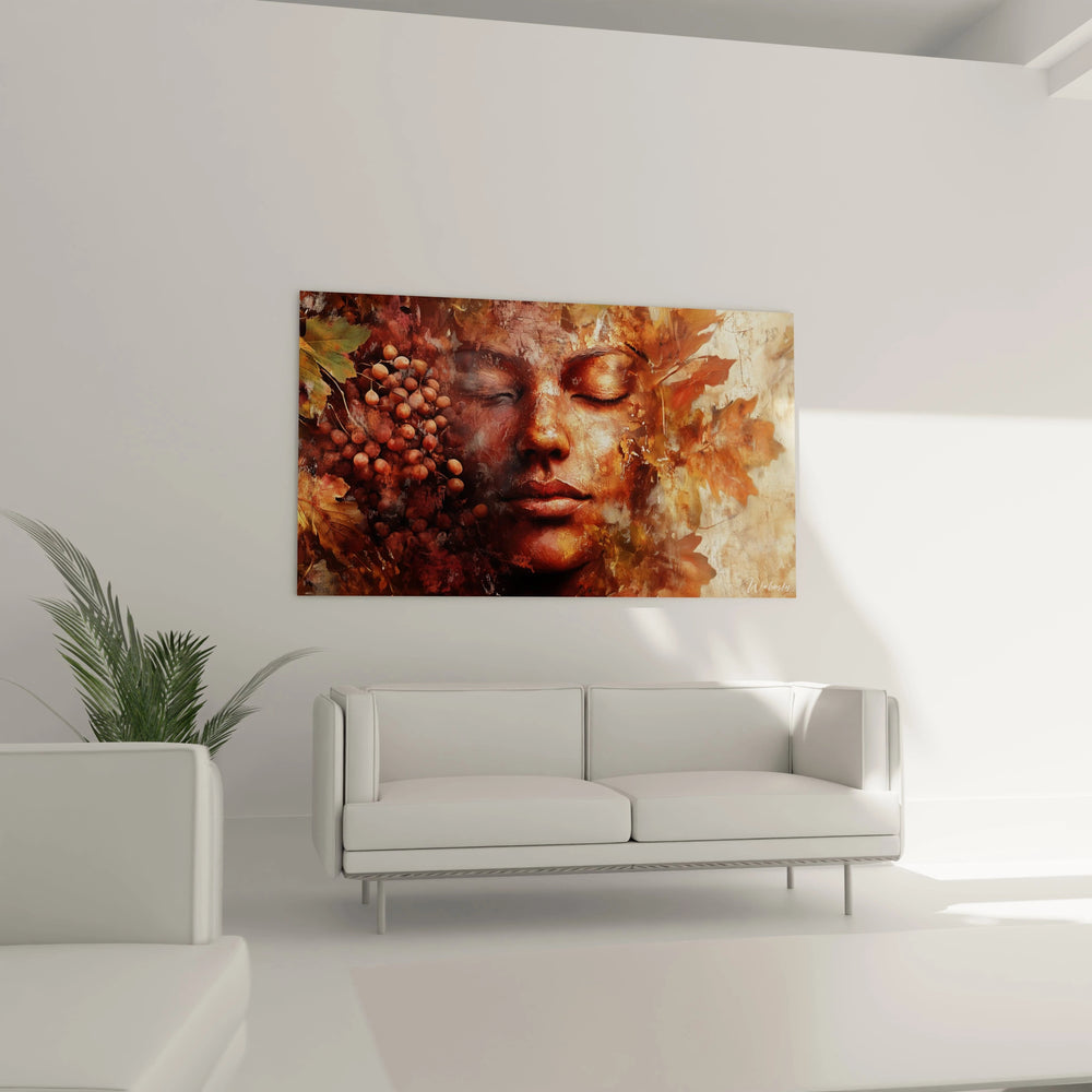 Chaque détail de cette création raconte une histoire de changement et d’équilibre subtil. Les textures organiques s’entrelacent avec la douceur des traits humains, créant une continuité visuelle où le corps semble naître de la terre elle-même. Ce tableau ne se contente pas d’habiller vos murs : il invite au recueillement, à la réflexion sur le cycle perpétuel de la vie, la fertilité et la fin inévitable de chaque saison.