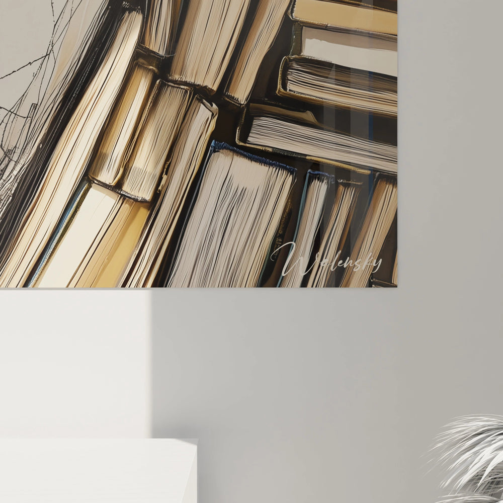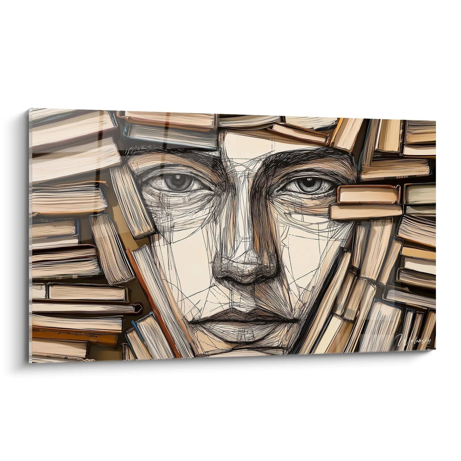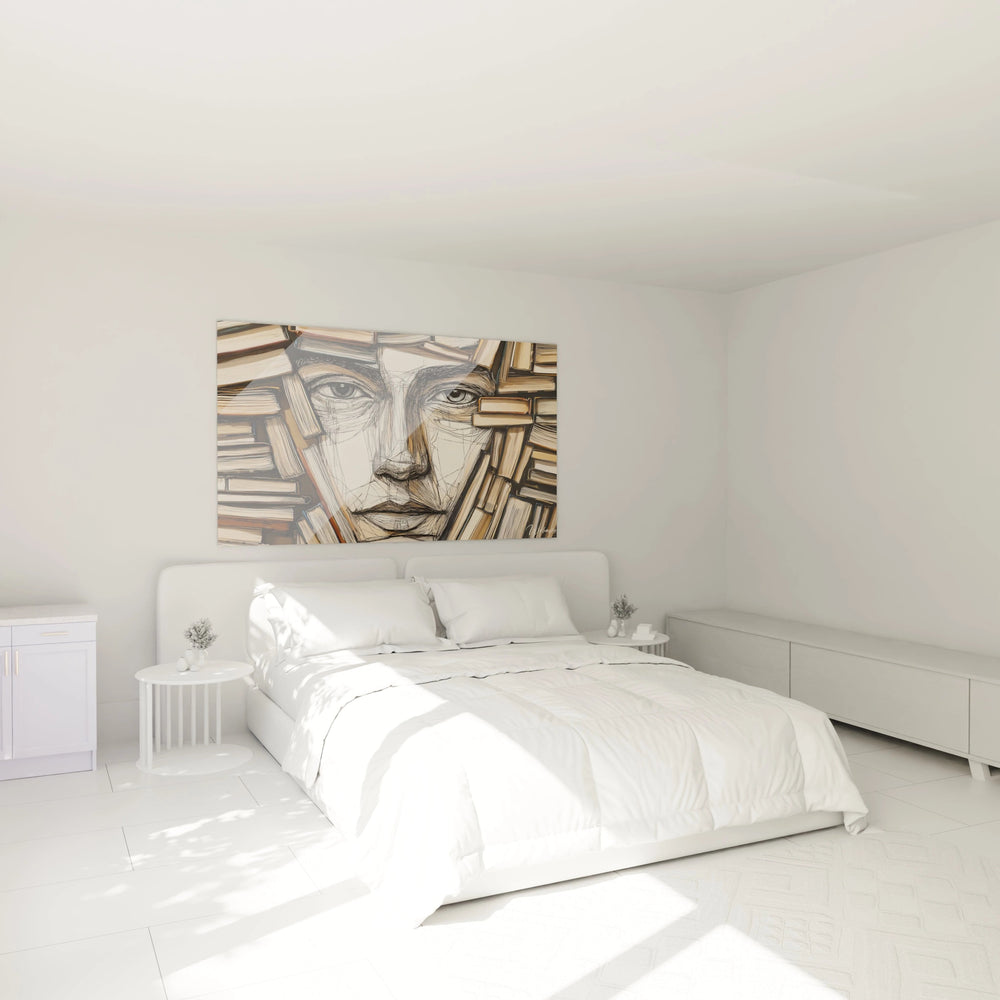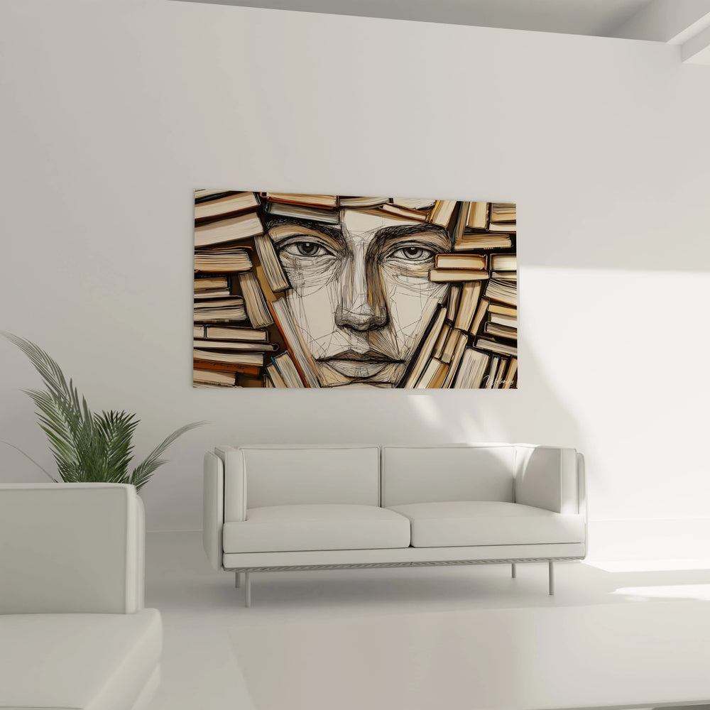 Cette composition déploie sa palette naturelle aux tons beige, marron et noir, offrant à votre intérieur une atmosphère chaleureuse, feutrée, presque enveloppante. La délicatesse des textures rappelle les lignes fines d’un croquis, tandis que la disposition précise des volumes donne vie à un portrait qui semble émerger lentement, comme un secret révélé. Ainsi, le tableau devient bien plus qu’une simple image : c’est une bibliothèque vivante, où chaque livre est une pensée, chaque trait une émotion.