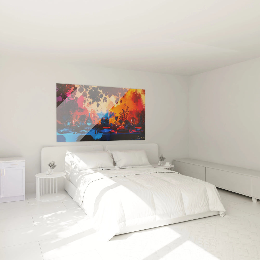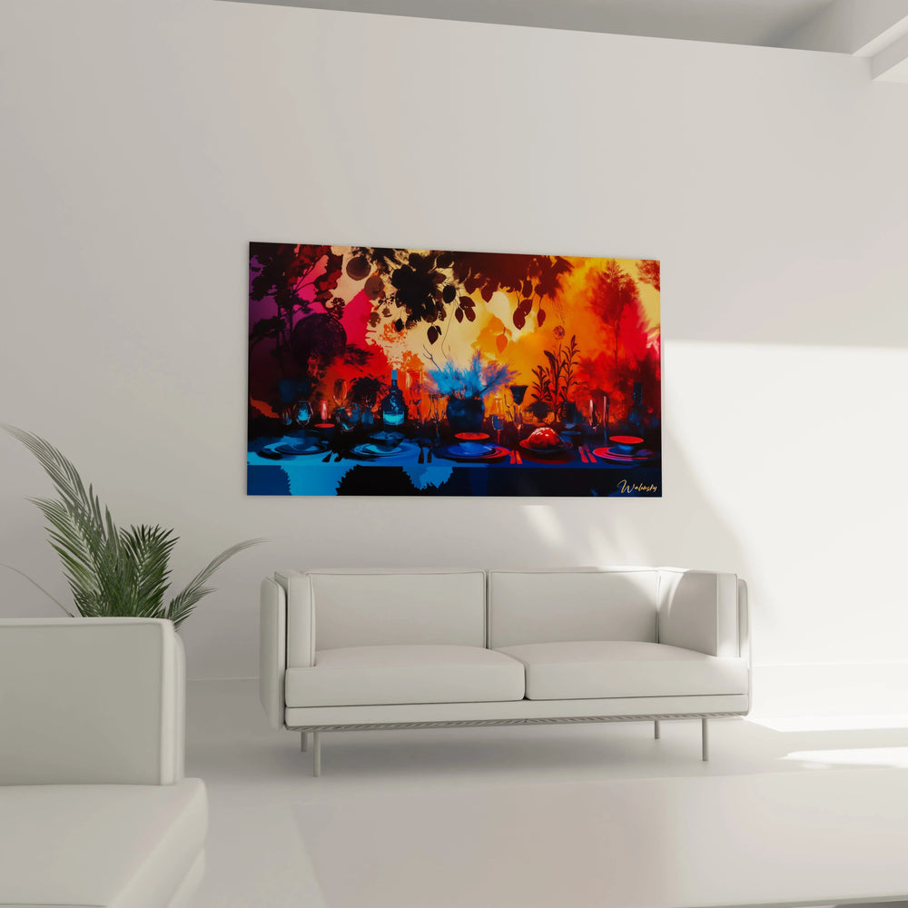 Ce tableau est bien plus quâune simple image ; câest une invitation Ă plonger dans une ambiance intime et chaleureuse. Les nuances profondes de bleu se mĂȘlent aux Ă©clats ardents dâorange et de rouge, crĂ©ant une palette riche qui Ă©veille vos sens. Chaque dĂ©tail â un reflet dĂ©licat, une Ă©clatante transparence â raconte une histoire de convivialitĂ© et de raffinement. En lâobservant, vous ressentez la texture subtile des objets, la chaleur des lumiĂšres incandescentes et la dĂ©licatesse du moment figĂ©.