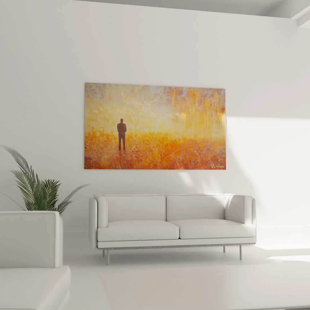 Plongez dans une ambiance intemporelle avec ce tableau unique qui rend hommage à l’œuvre emblématique de Jean-François Millet. Vous serez transporté dans un paysage où la lumière dorée caresse doucement un homme solitaire face à l’infini, incarnant un dialogue silencieux entre l’humain et la nature. Chaque regard posé sur cette œuvre vous invite à un instant suspendu, où la beauté naturelle et la réflexion intérieure se mêlent en parfaite harmonie.